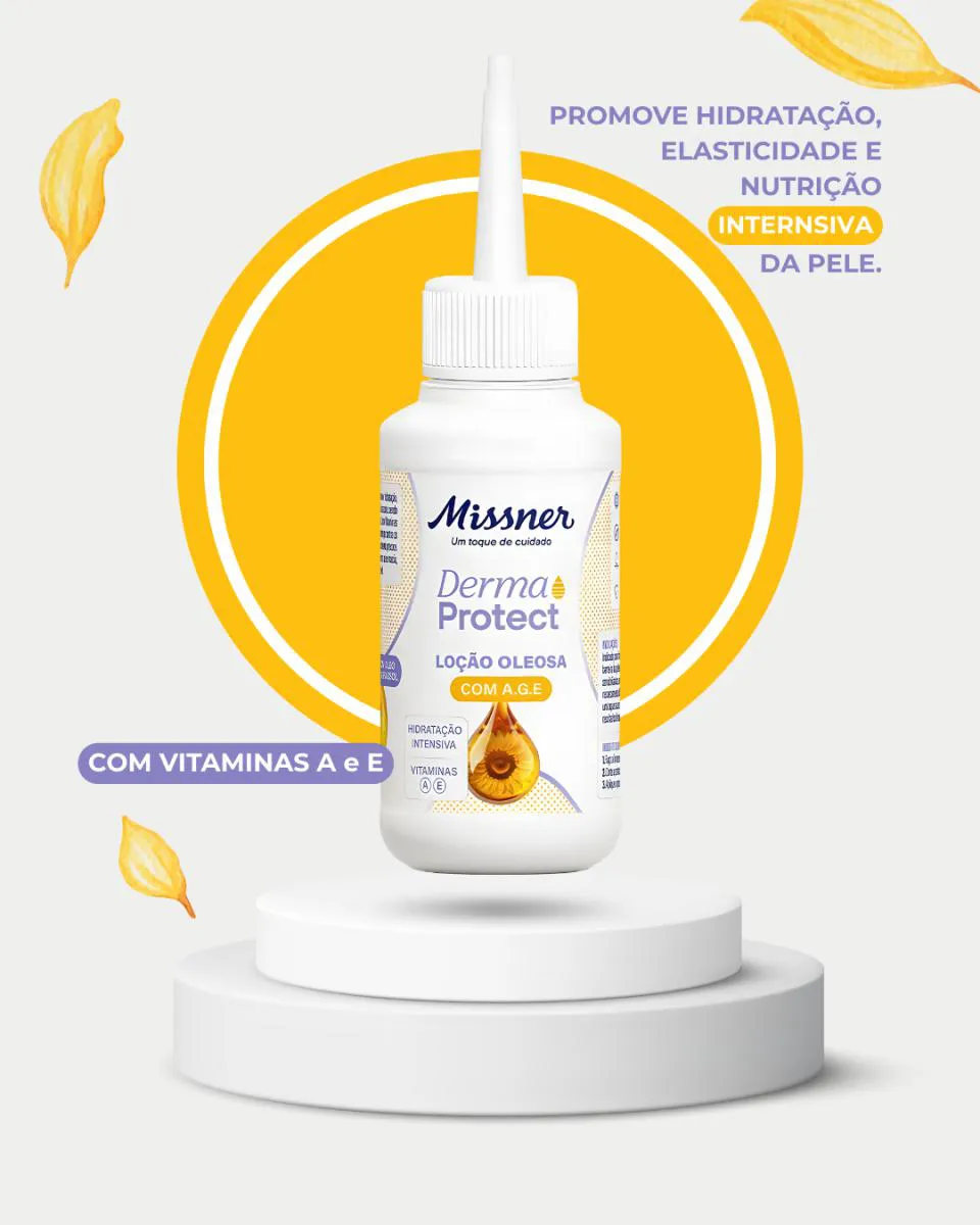 A loção oleosa Derma Protect 100ml, da Missner, serve para hidratação profunda e restauração da barreira protetora da pele, especialmente em áreas ressecadas ou sensibilizadas. Ela contém ácidos graxos essenciais (AGE) que auxiliam na regeneração e nutrição da pele, formando um filme protetor leve e não oleoso. Além disso, ajuda a prevenir o ressecamento, assaduras e irritações.