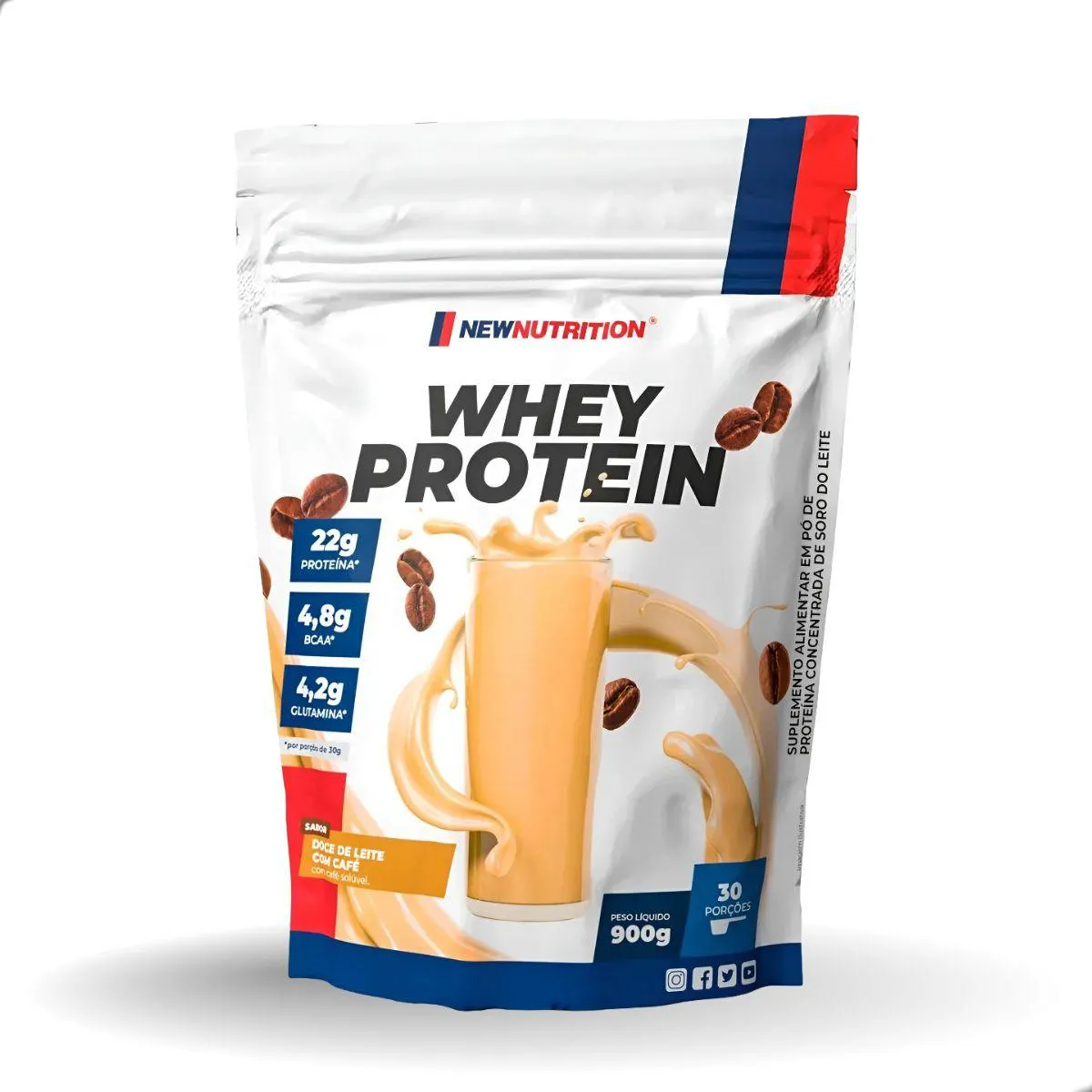 100% Whey Protein 900G New Nutrition Doce DE Leite COM Café