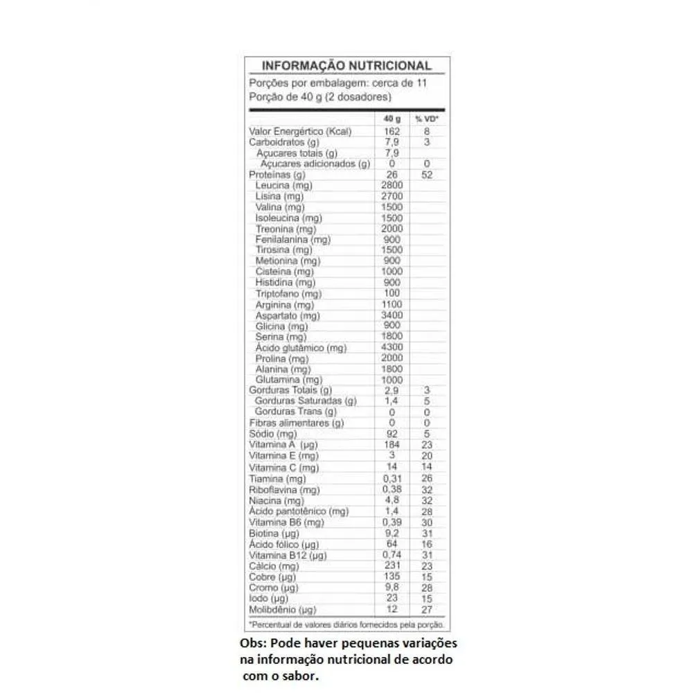 - Rico em proteínas, BCAAs e vitaminas B12 e B6.