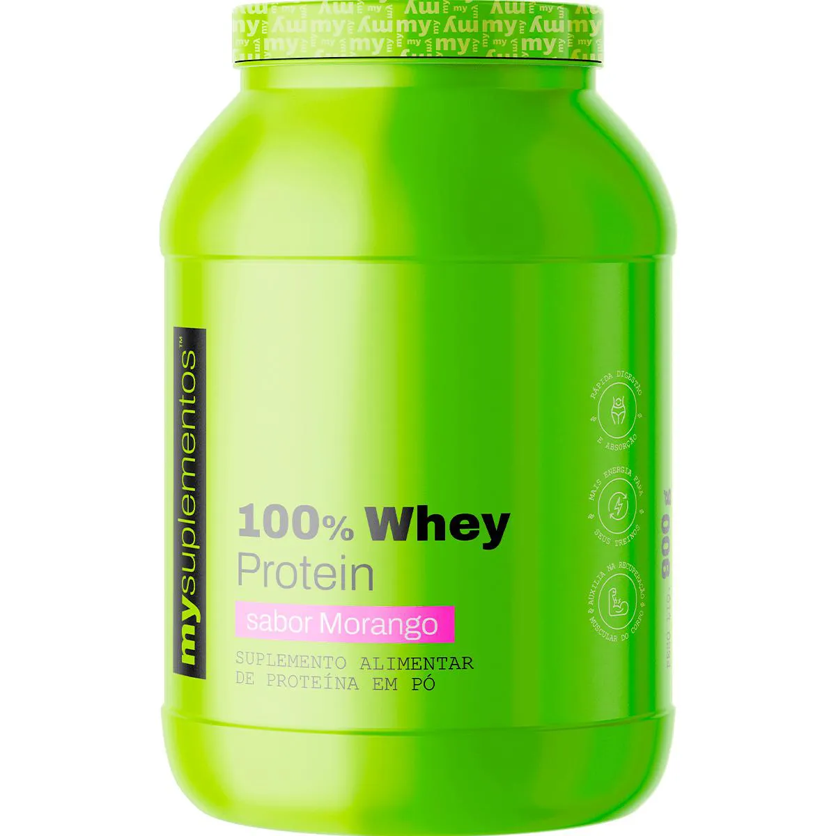 100% Whey Protein 900G | Whey Protein Concentrado - My Suplementos Morango