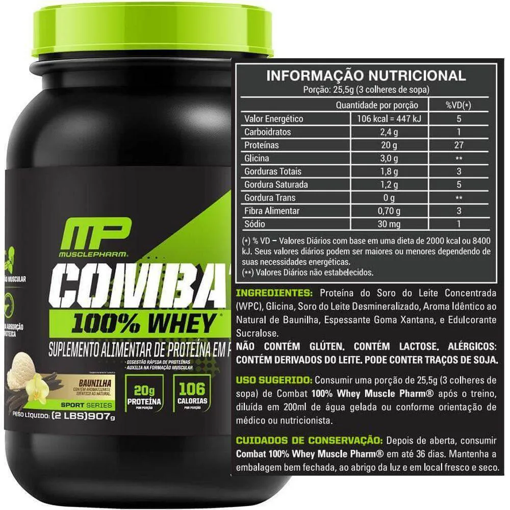 100% WHEY PROTEIN COMBAT - (907G) - MUSCLE PHARM Baunilha