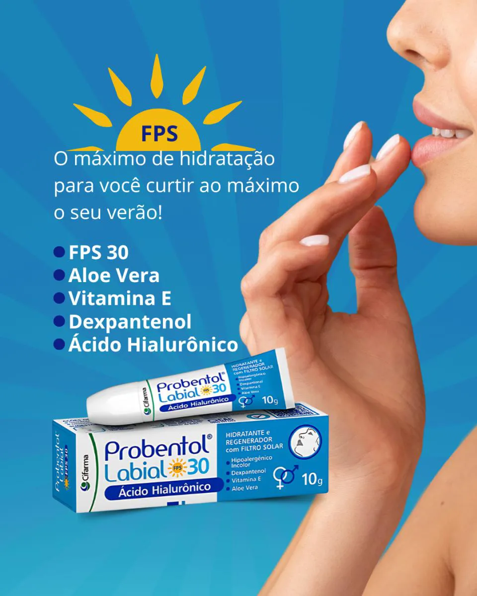 O Probentol Labial é um regenerador e hidratante de uso diário, que proporciona hidratação intensa e duradoura para os lábios.