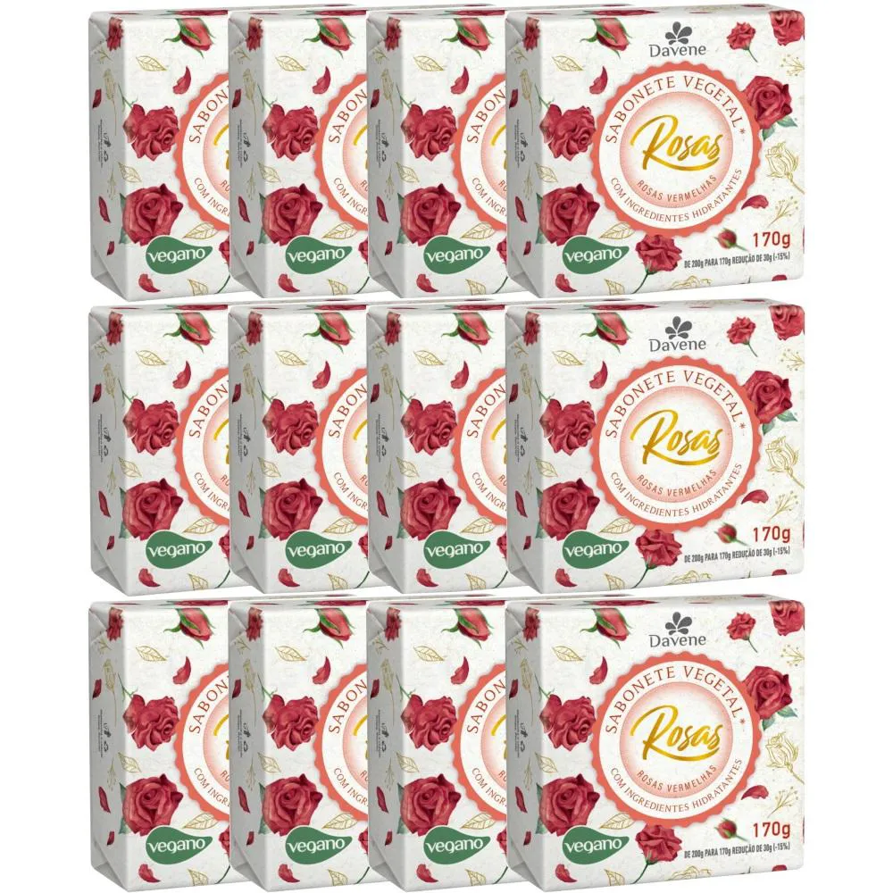 12UN Sabonete Vegetal Rosas Vermelhas 170G Davene