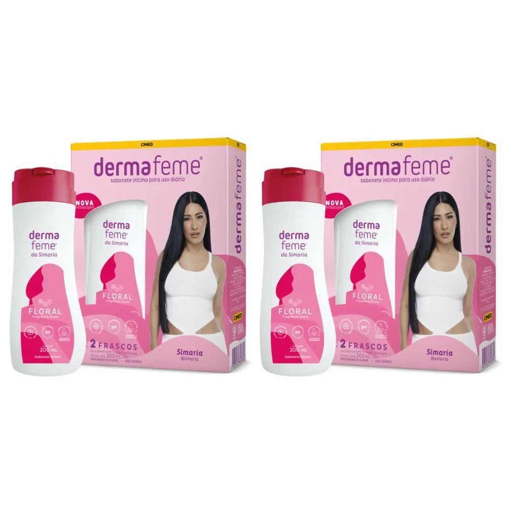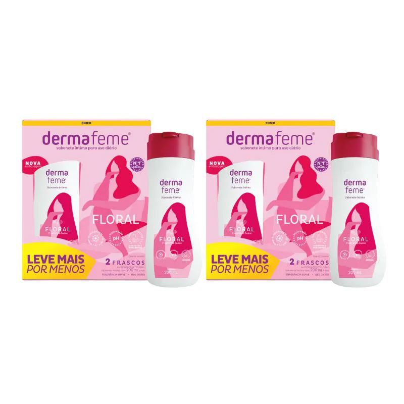 2 Kit Sabonete Líquido Intimo Dermafeme 200ml C/4 Unidades Floral