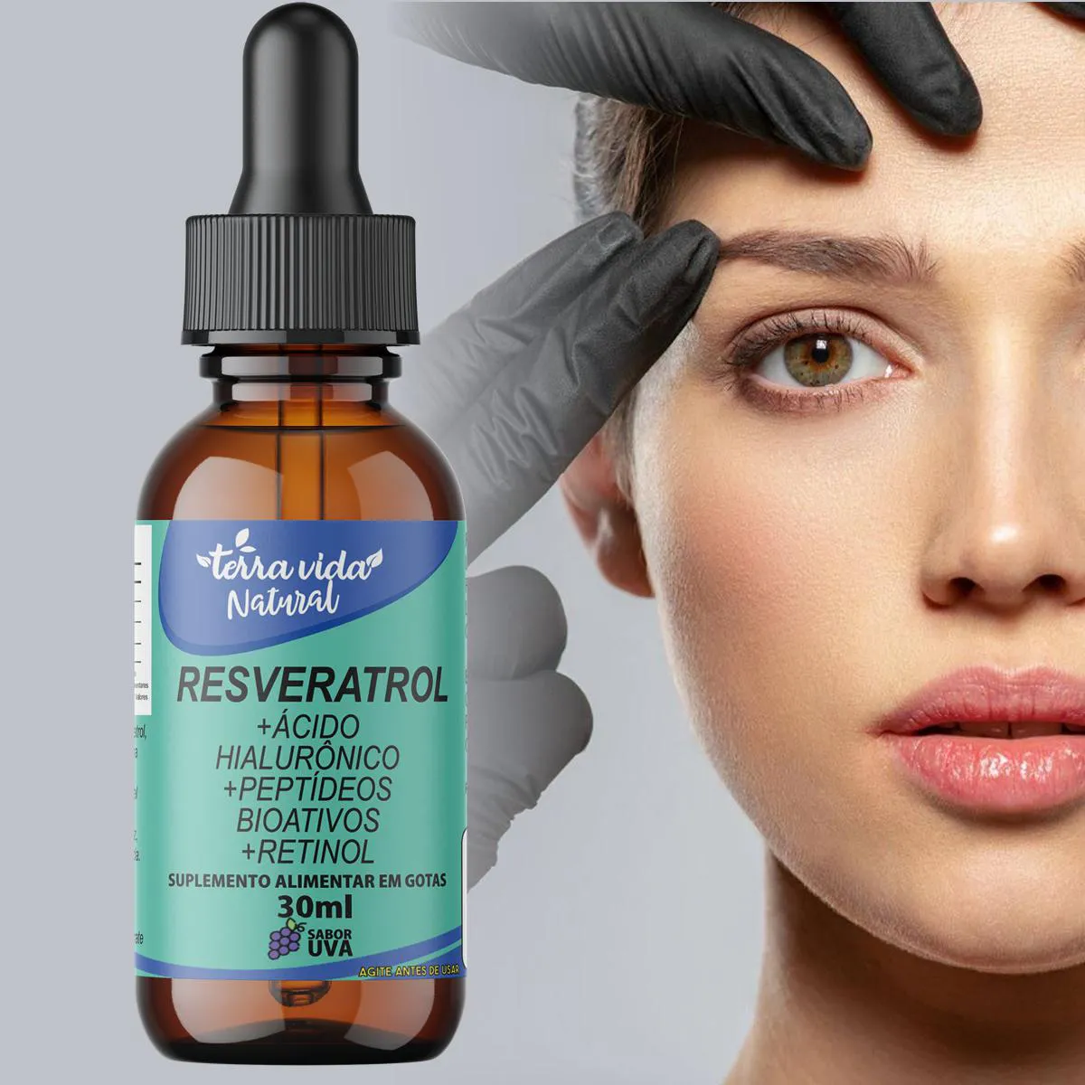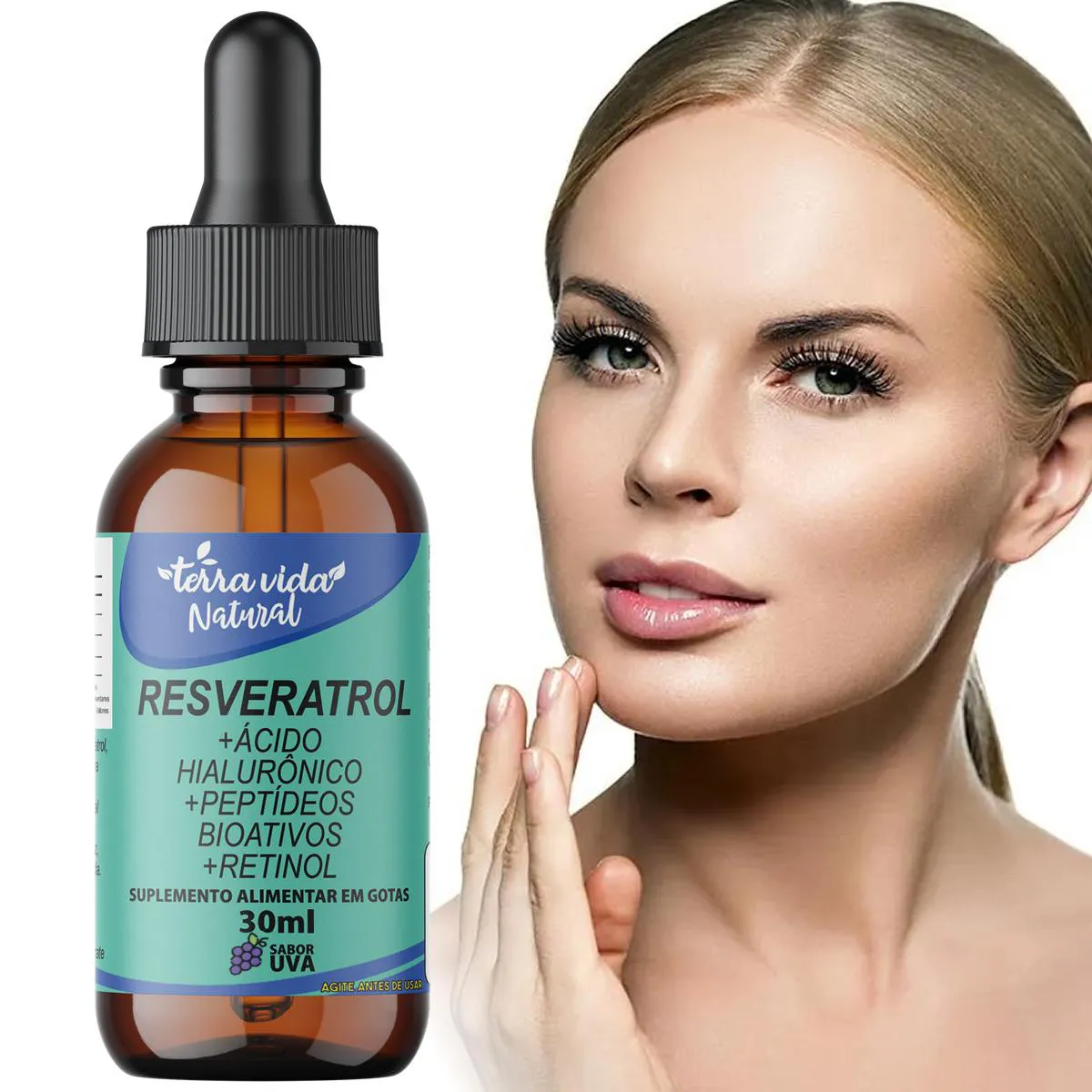 2 Resveratrol +Ácido Hialurônico +Colágeno +Vitamina A(Retinol) de 30ML Sabor UVA