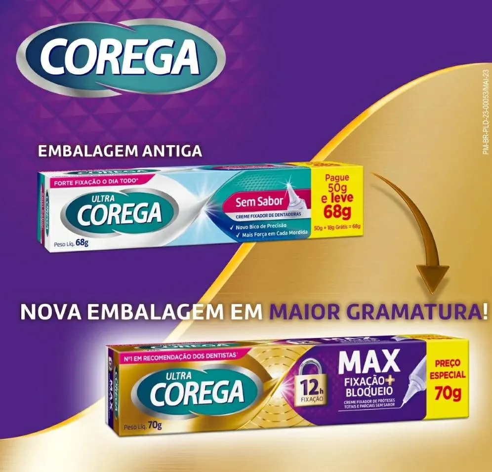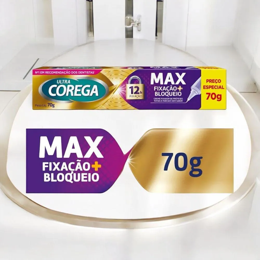 O Fixador de Dentadura Ultra Corega é um creme desenvolvido para proporcionar segurança e conforto ao utilizar próteses dentárias. Ele oferece fixação por até 12 horas, impedindo a passagem de partículas de comida entre a gengiva e a prótese, o que ajuda a prevenir irritações. A fórmula do Ultra Corega é livre de zinco e não contém sabores artificiais, garantindo que a fixação seja firme e discreta, sem alterar o sabor dos alimentos.