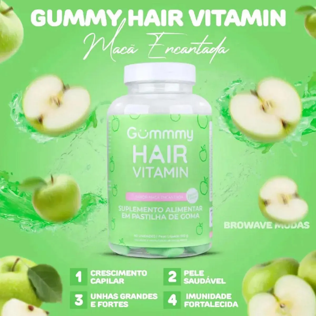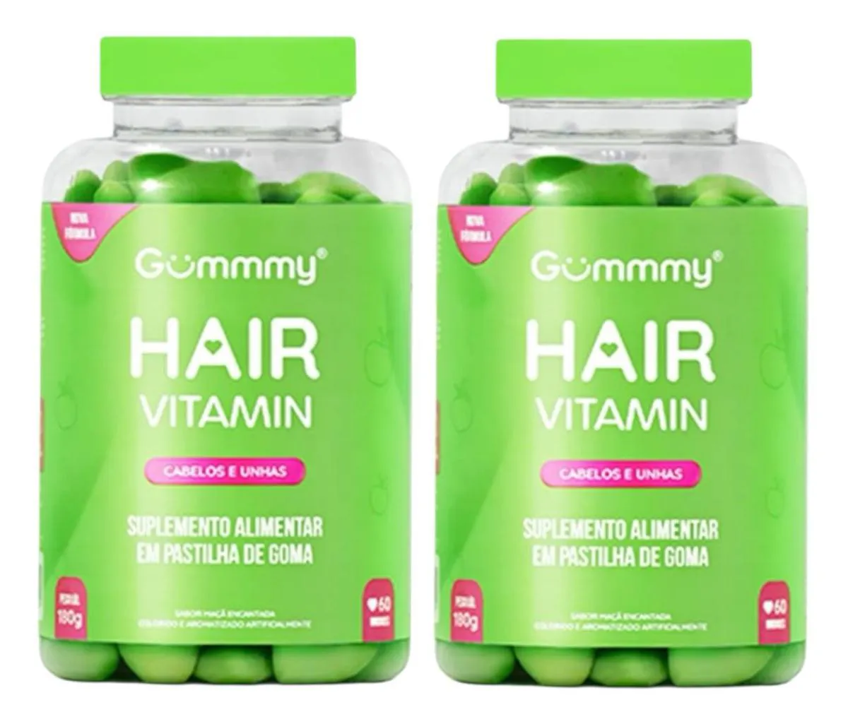 2 Unidades Vitaminas para Cabelos Gummy Hair 60 Gomas Maça