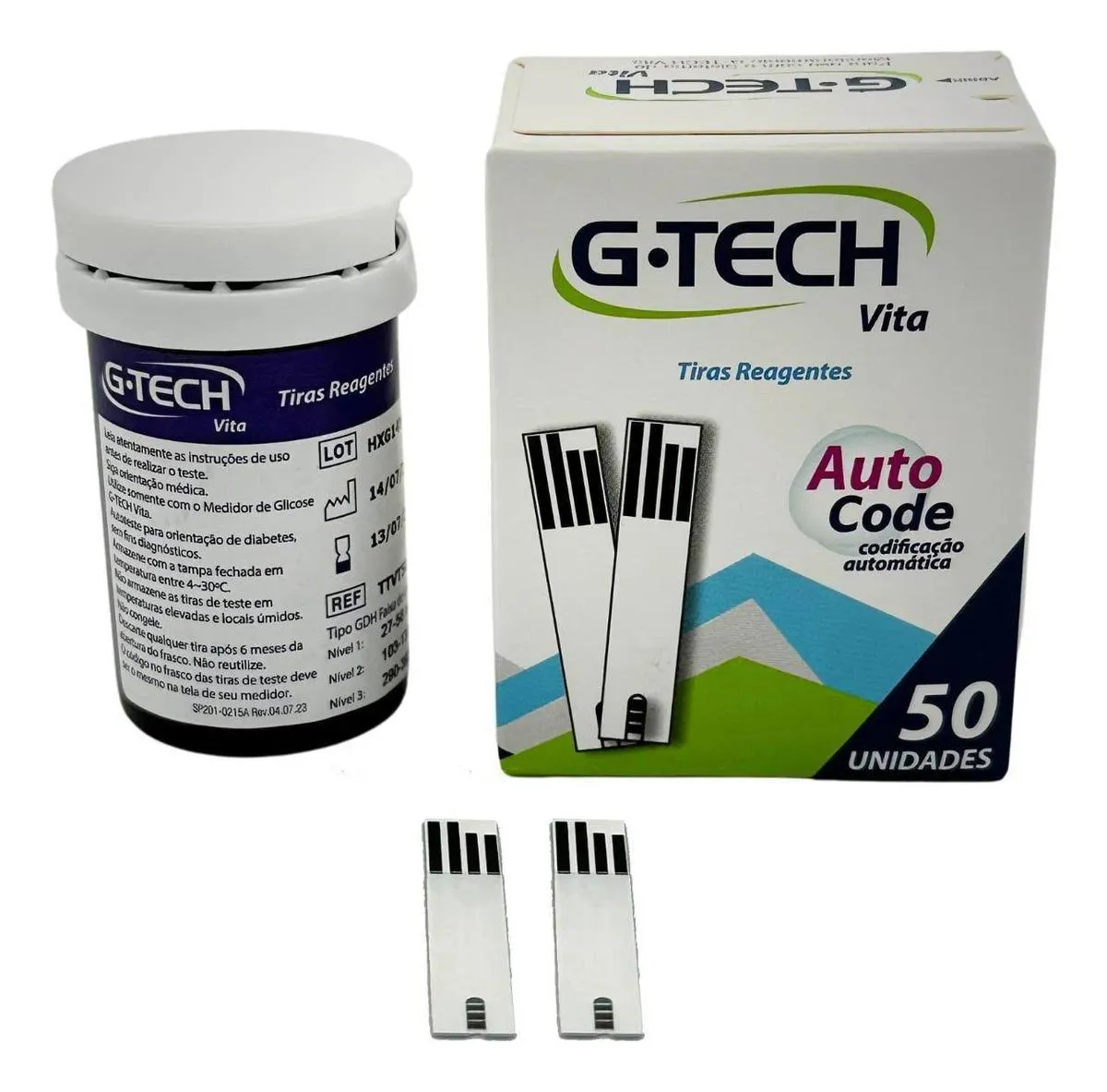 Além das tradicionais embalagens de 25 ou 50 tiras, as Tiras Reagentes G-Tech Vita contam com a nova apresentação de 50 tiras embaladas individualmente. Com o exclusivo sistema AutoCode, cada tira possui um código interno que é automaticamente reconhecido e ajustado pelo aparelho, evitando resultados incorretos pela codificação manual do usuário e tornando a medição muito mais segura e rápida.