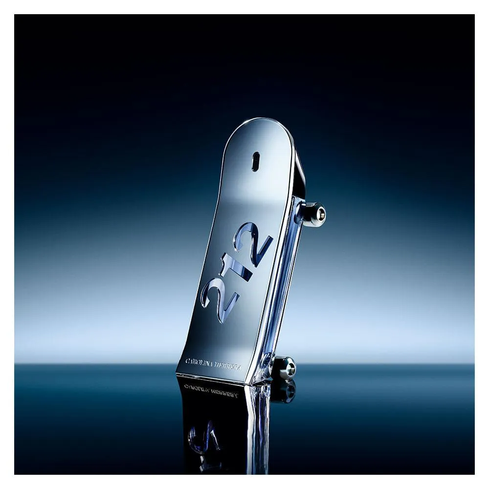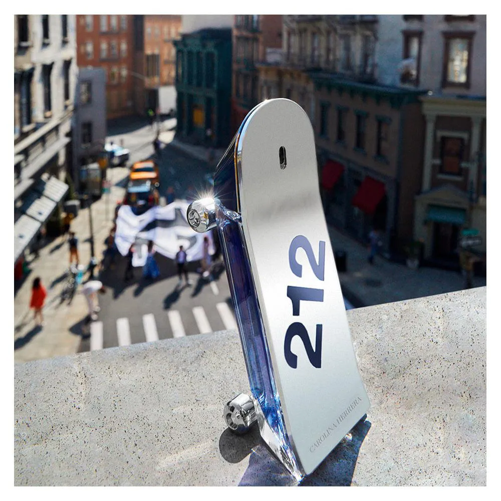 A embalagem anuncia a força inovadora de todo o projeto. 212 Heroes é engarrafado dentro de um frasco em formato de skate. A silhueta evoca irreverência. Existe um arquétipo mais livre e autêntico do que o skate? O skate, que nasceu na Califórnia por volta dos anos 1950 como a versão urbana do surfe, rapidamente se tornou o fenômeno cultural global e o modo de vida que é hoje. Suas possibilidades são ilimitadas. E a influência do lema Faça Você Mesmo e de sua estética icônica é contínua.