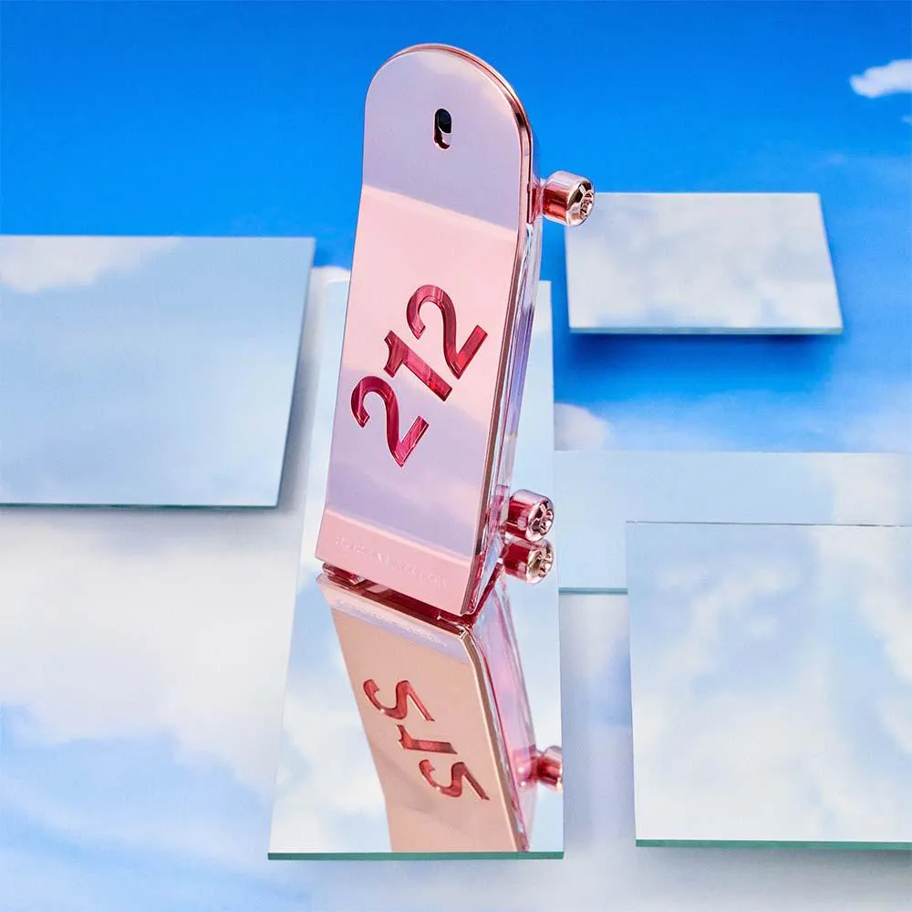 O frasco do perfume 212 Heroes For Her vem numa versão ultra sofisticada em tom dourado-rosé, fabricado de forma inovadora em vidro cromado. O skate é um forte símbolo de juventude, da liberdade, da feminilidade moderna e da autoexpressão.