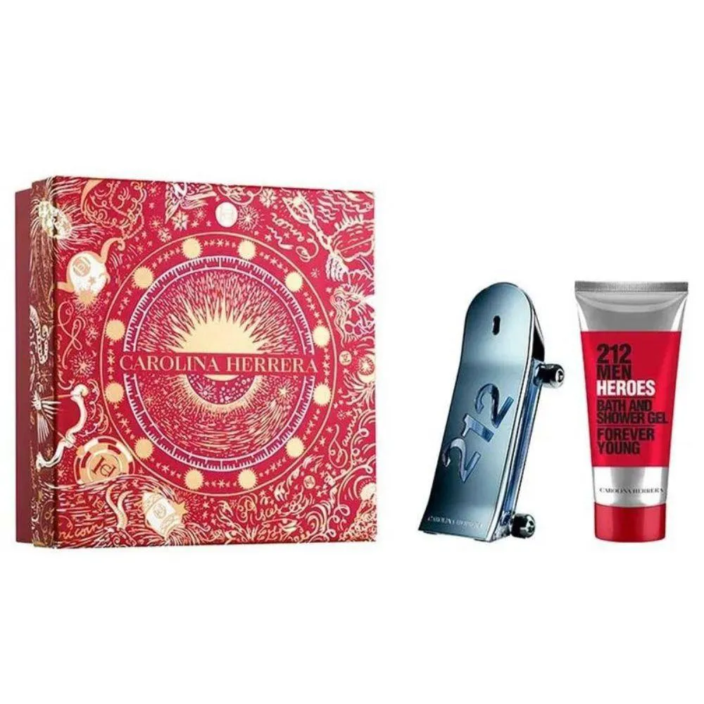 Conjunto masculino com perfume 212 Men Heroes fougère frutado amadeirado e um gel de banho Carolina Herrera. Combo ideal para inspirar a juventude.