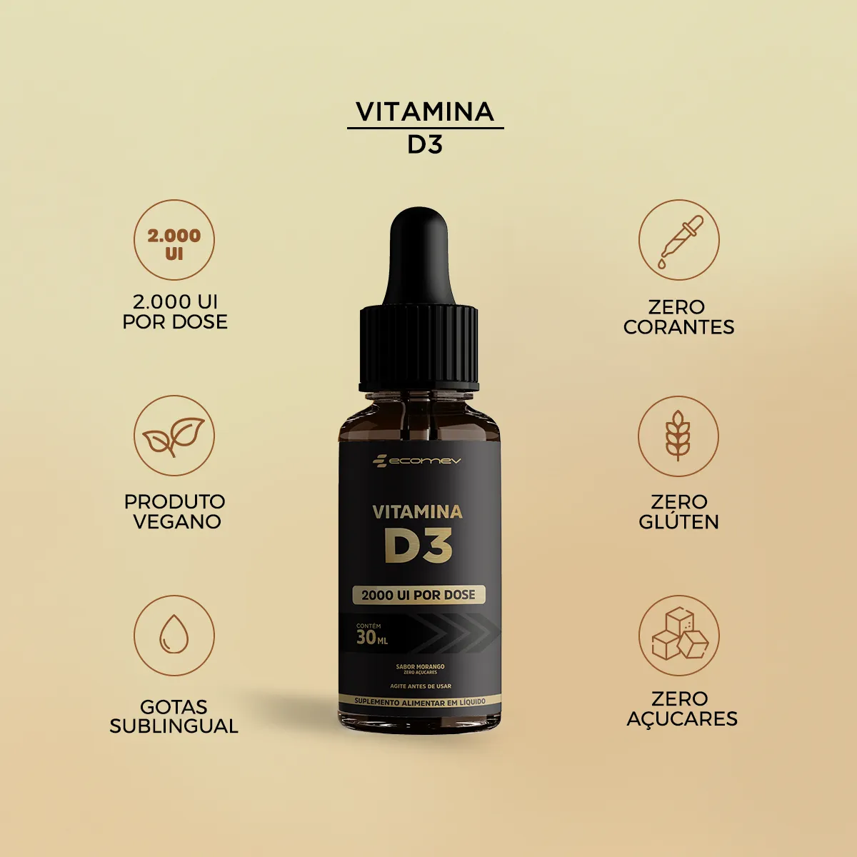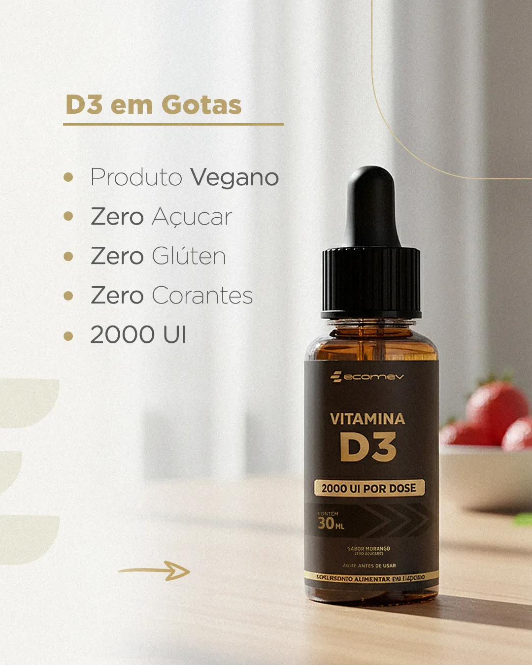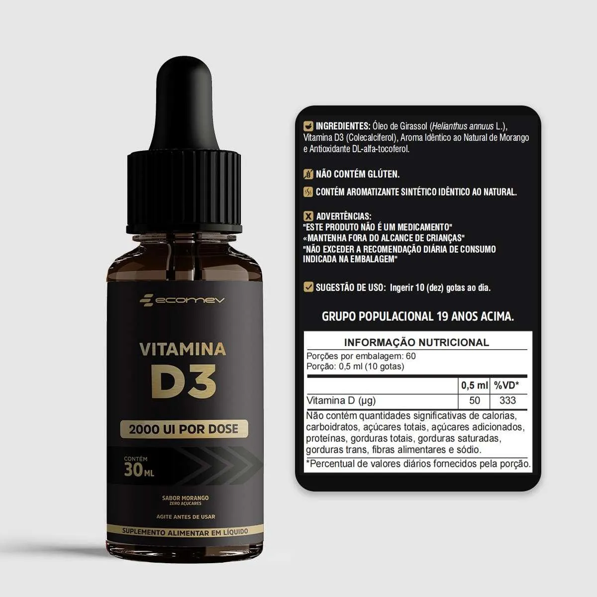 2Un Vitamina D3 2.000Ui em Gotas 30Ml - Sabor Morango