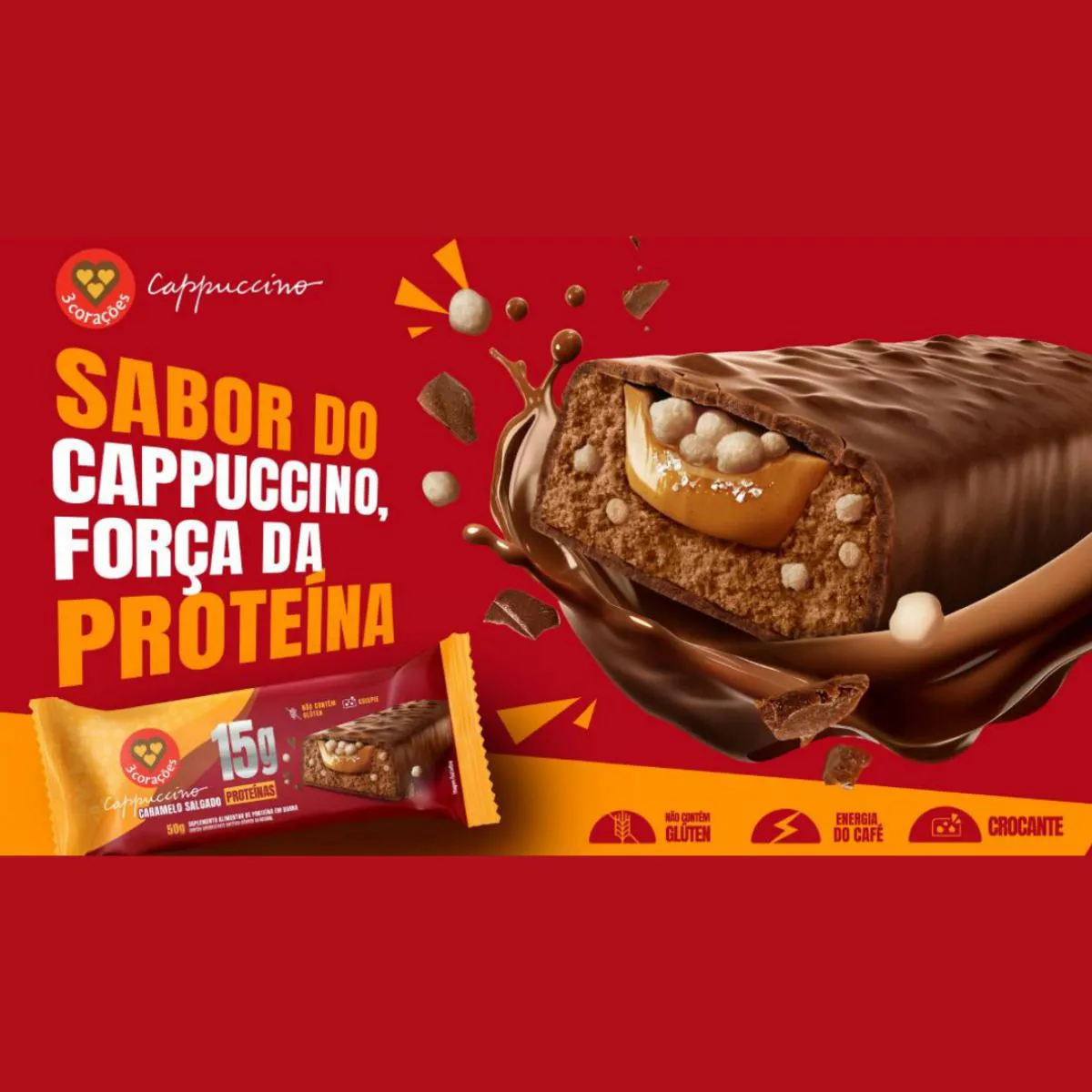 2X Barra Proteica 3 Corações Cappuccino Caramelo 12Un 50G Cappuccino Caramelo Salgado