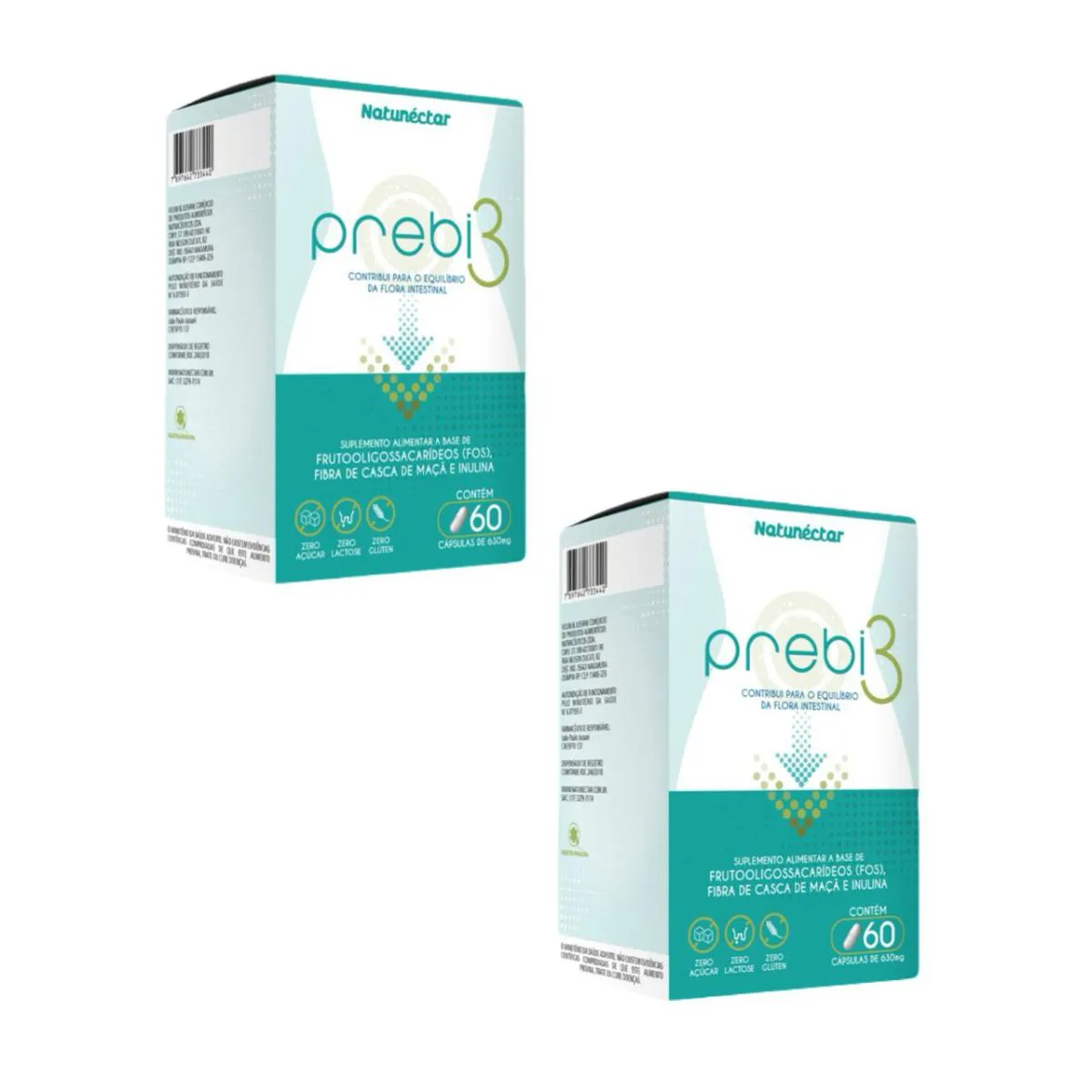 Prebi 3 fibras - Natunéctar- 60 cápsulas - Kit contendo 2 caixas com 60 cápsulas cada.