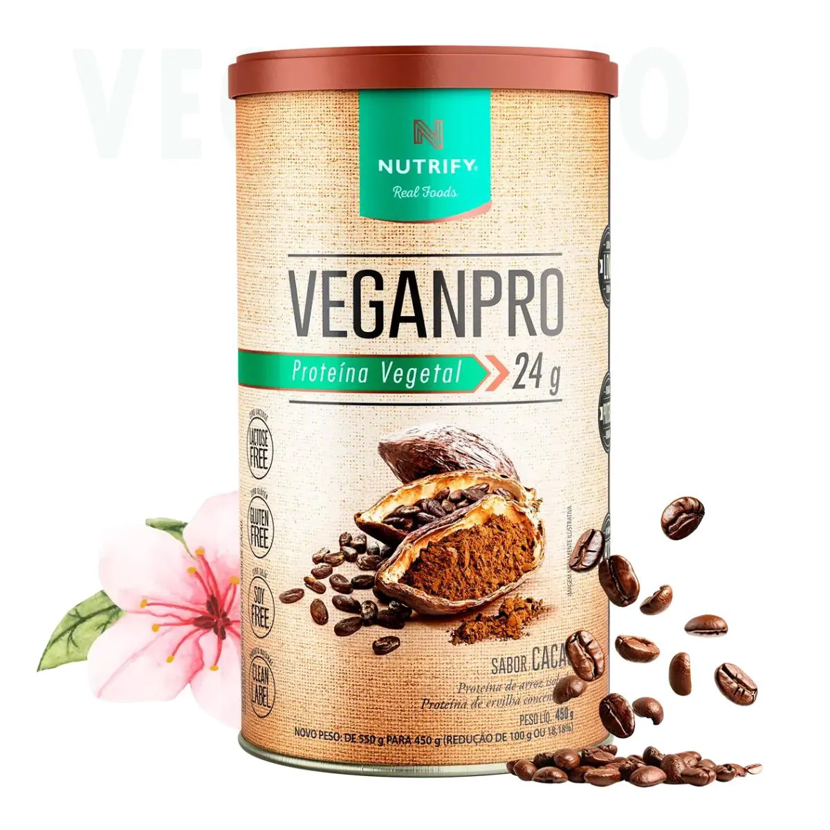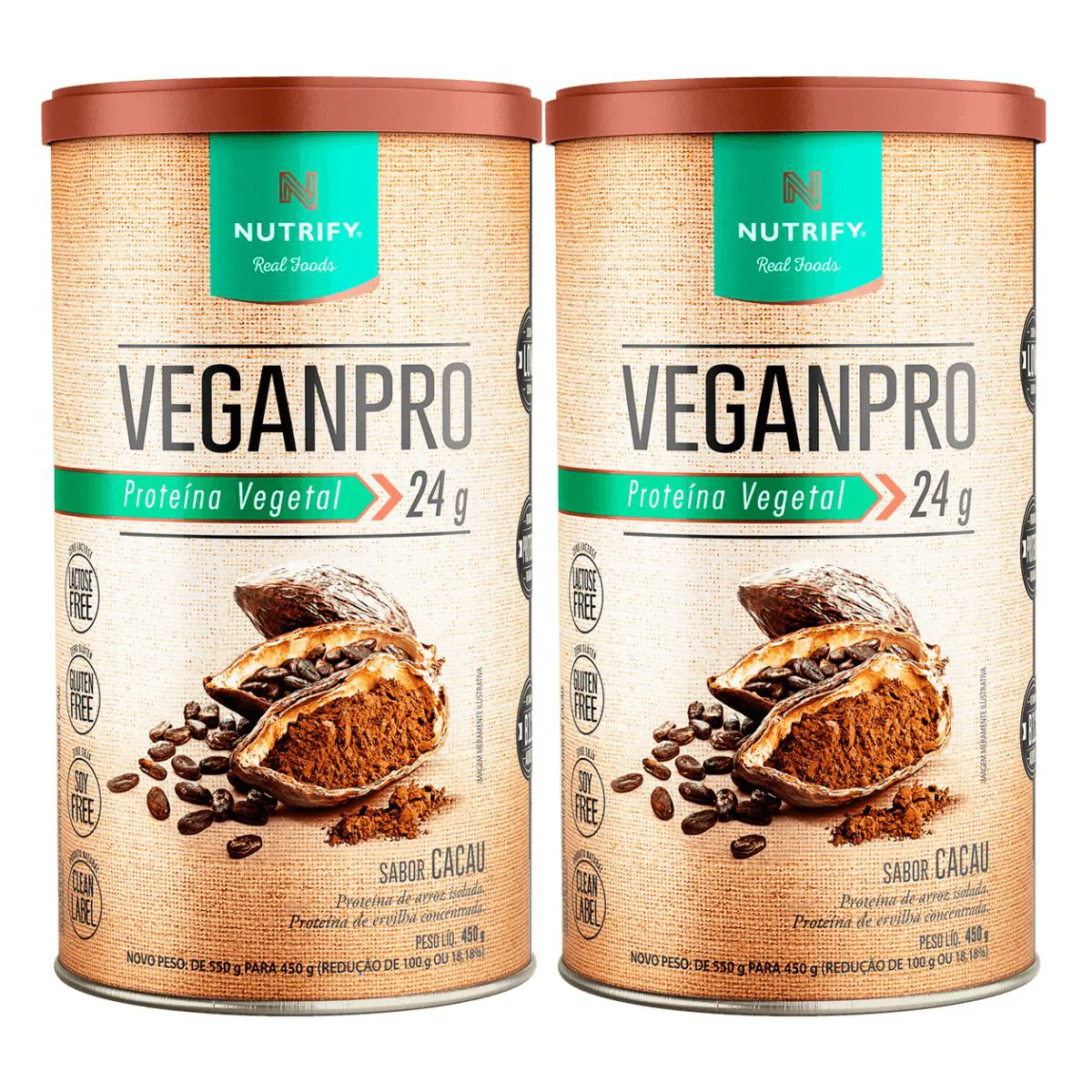 2X Proteína Vegana Isolada Veganpro Nutrify Cacau 450G