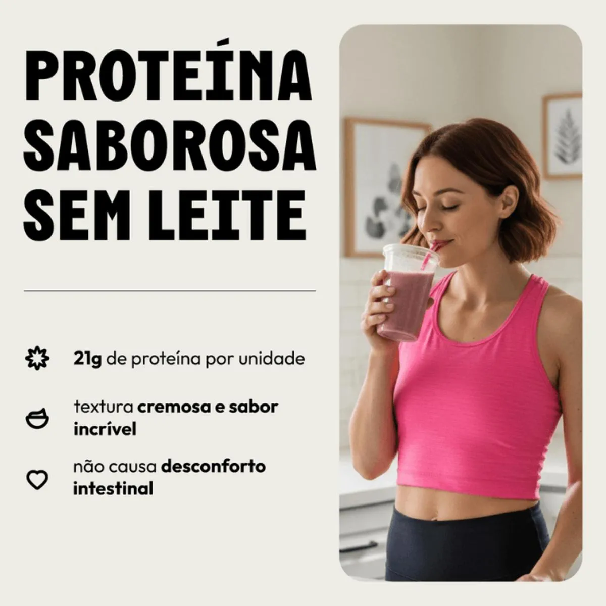 - Suporte ao desenvolvimento muscular com 21g de proteína por porção.