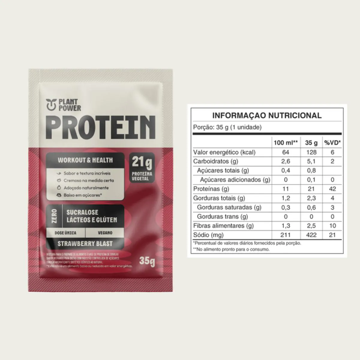 É um suplemento alimentar proteico vegetal em sachê, com sabor Strawberry Blast, desenvolvido a partir de proteína de ervilha, livre de glúten e lactose. Serve para auxiliar no desenvolvimento muscular, fornecendo 21g de proteína por porção, com o objetivo de maximizar resultados físicos e promover o bem-estar do praticante de atividades físicas.
