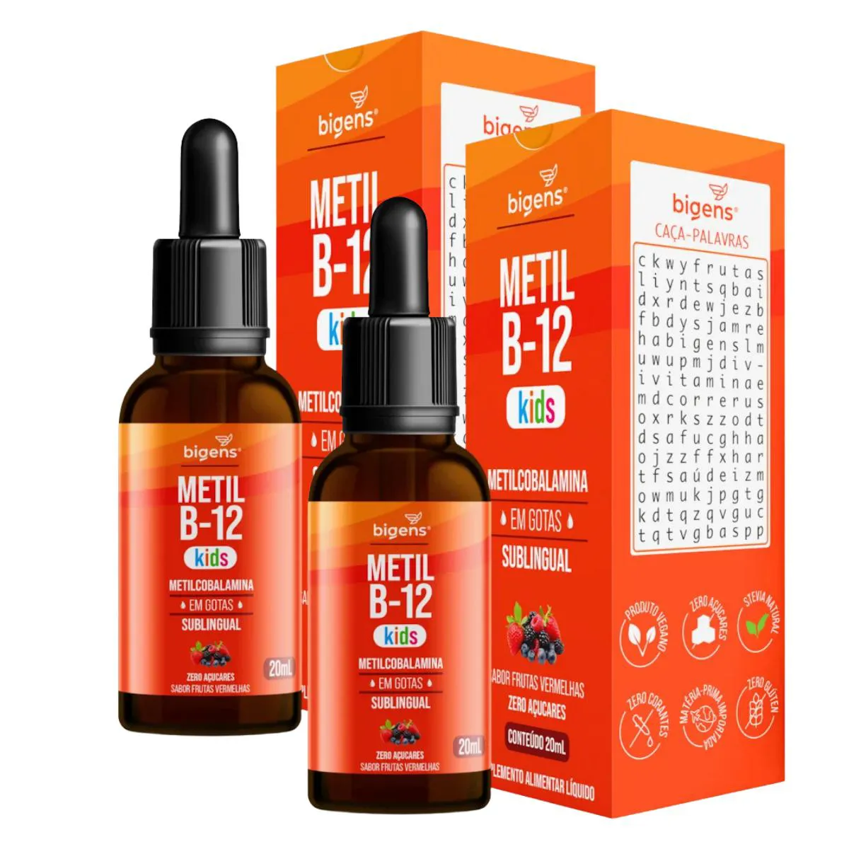 2x Vitamina B12 Metilcobalamina Kids Bigens Frutas Vermelhas 20ml