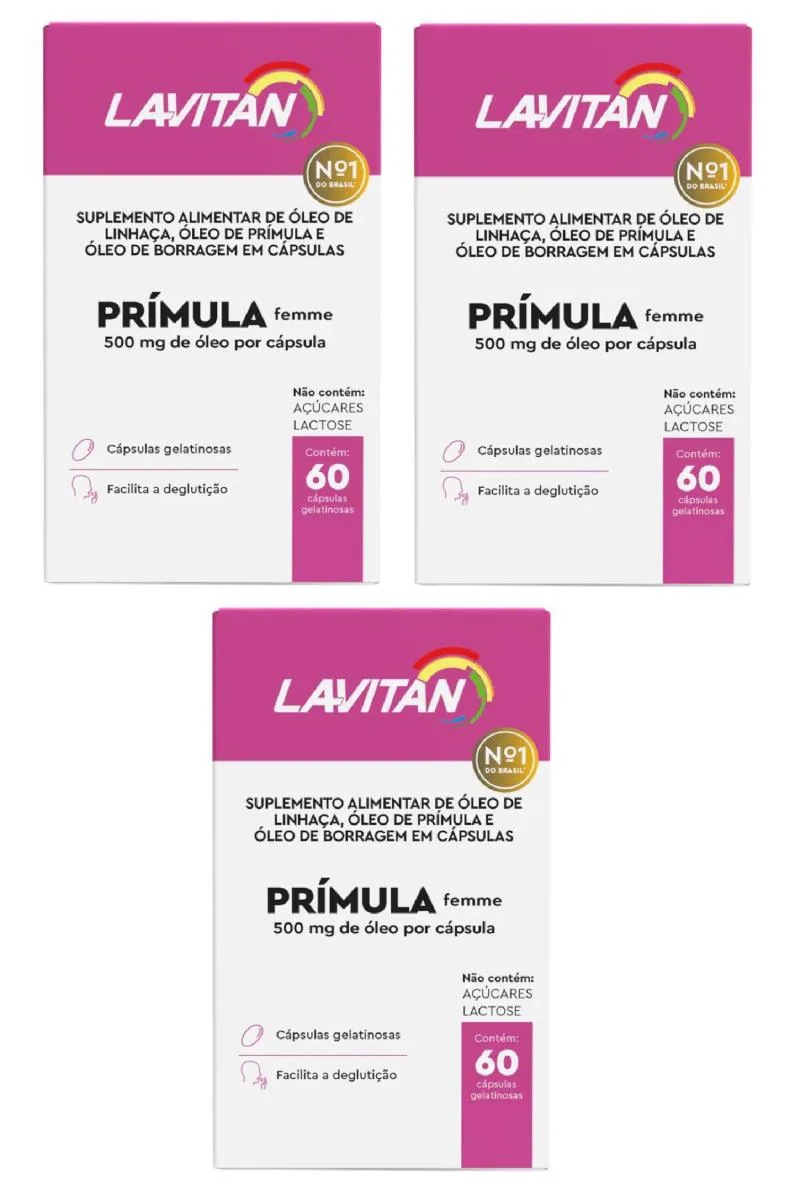 3 Caixas Óleo de Prímula Femme 60 Cápsulas Lavitan