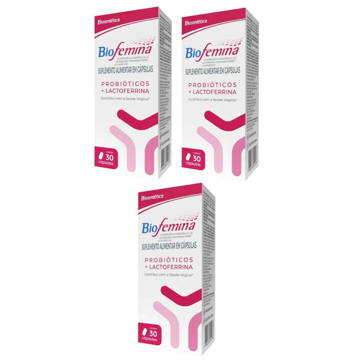 3 Caixas Suplemento Alimentar 30 Cápsulas Probioticos + Lactoferrina Biofemina