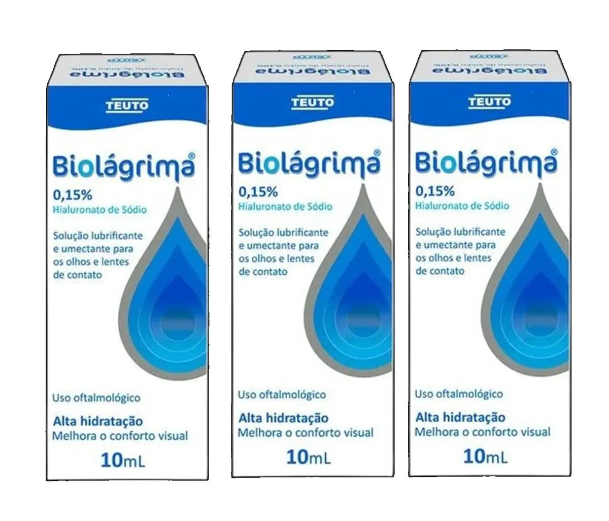 3 Colírios Biolágrima Hidrata e Lubrifica Olhos/Lentes 10ml O Biolágrima Teuto é uma solução lubrificante ocular estéril desenvolvida para proporcionar conforto aos olhos em situações de ressecamento, ardor ou irritação. Avisos importantes: Uso tópico ocular Conservar em local fresco e ao abrigo da luz Manter fora do alcance de crianças Venda proibida para menores de 18 anos Este produto não é um medicamento Imagens Meramente Ilustrativas. Todas as Informações Divulgadas são de Responsabilidade Exclusiva do Fabricante/fornecedor.
