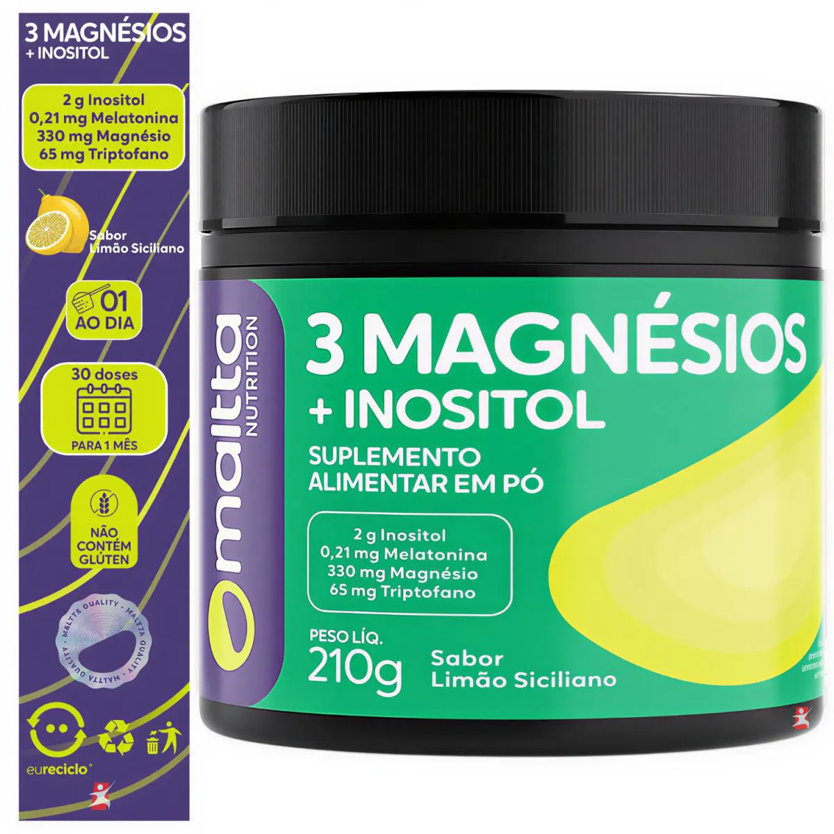 3 Magnésios + Inositol + Melatonina + Triptofano 210G Limão Siciliano 30 Doses - Maltta Nutrition