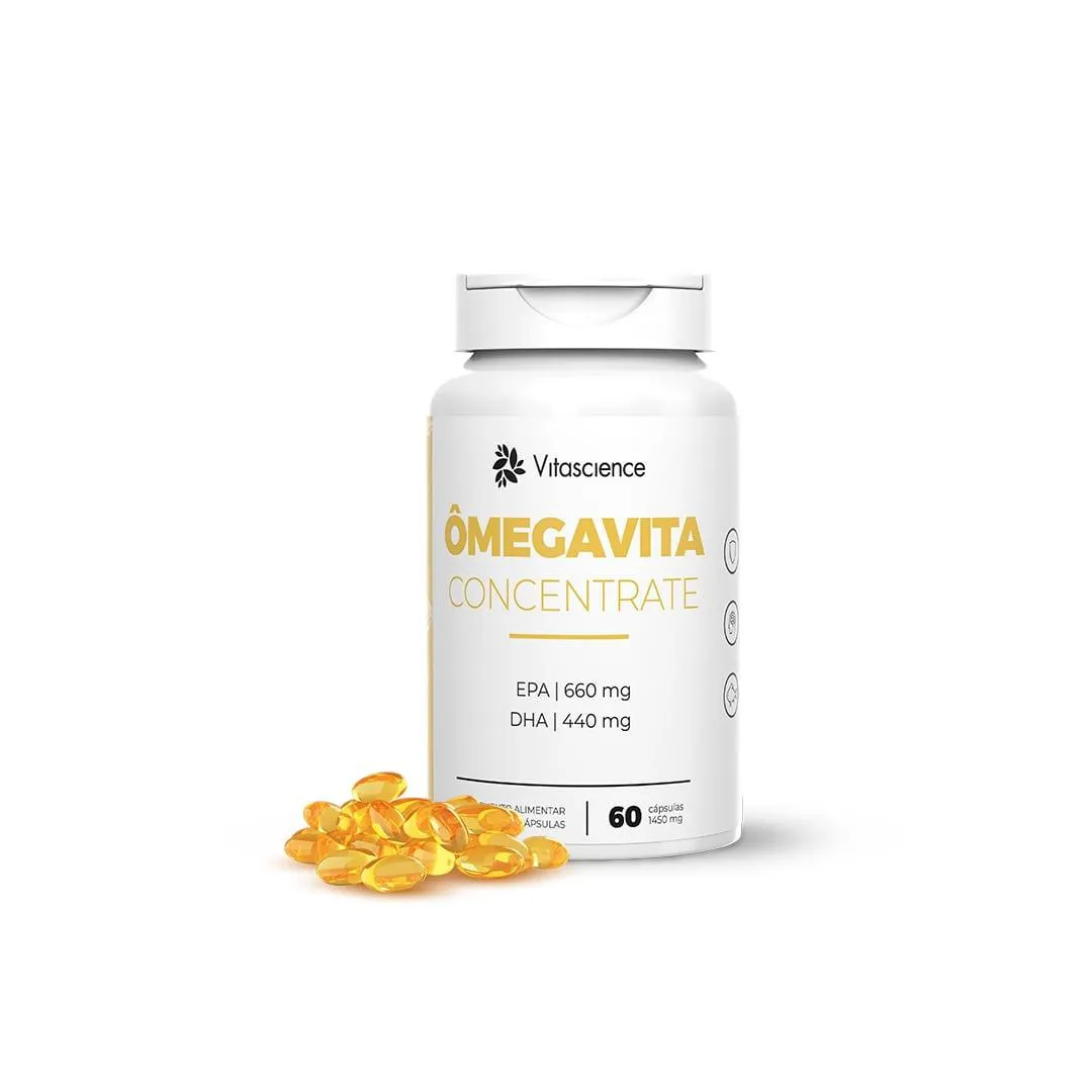 O que você irá receber: - 03 Potes Ômegavita Concentrate - Ômega-3: EPA 660mg | DHA 440mg   Características: - Ômega-3 EPA 660mg - DHA 440mg   Tags: vitamina; Vitaminas; Vit; Vitaminico; Complemento; Feminino; Masculino; 60; Em; +; Mulher; Homem; e; Suplemento; A-z; Comp; Caps; Pote; de; Natural; Ômega; omega; 3; cérebro; memória; coração; artérias;