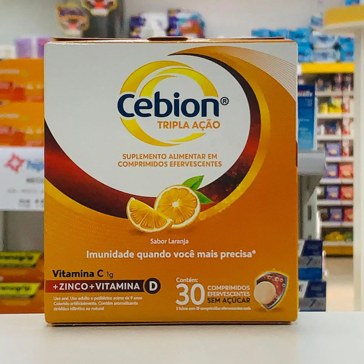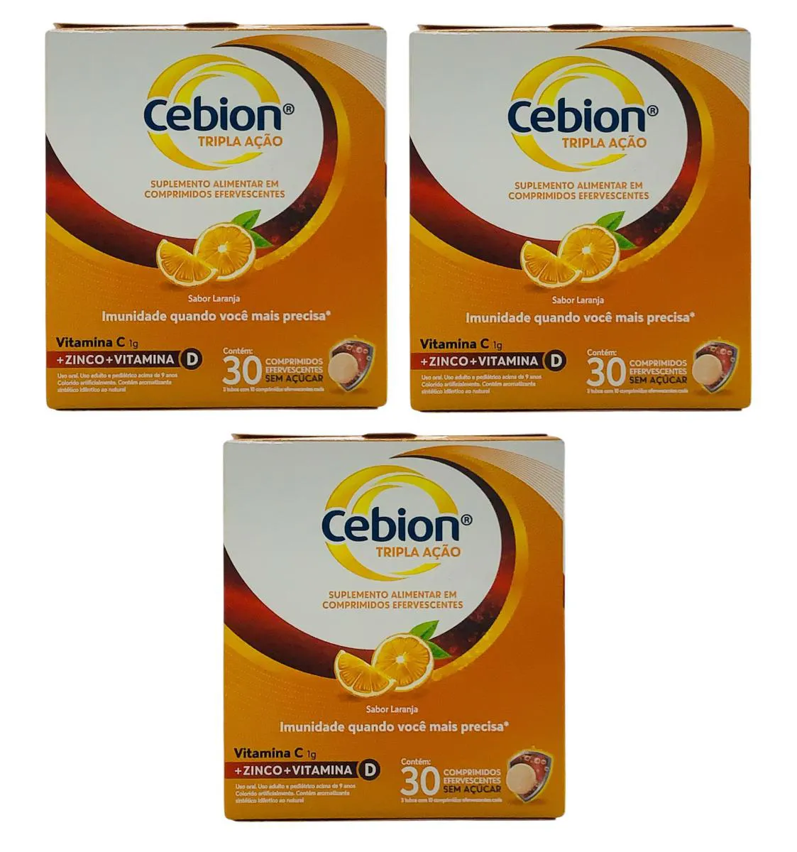 3 Un Cebion Vitamina C Efervescente Sabor Laranja Tripla Ação 30 Comprimidos
