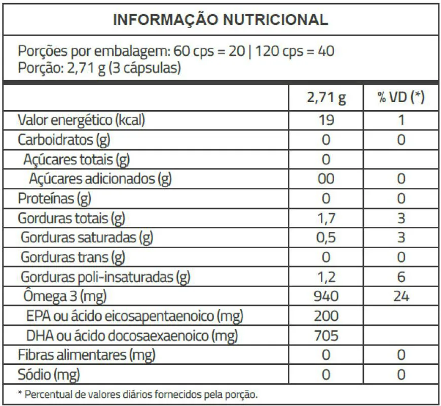 - 705 mg de DHA e 200 mg de EPA por porção