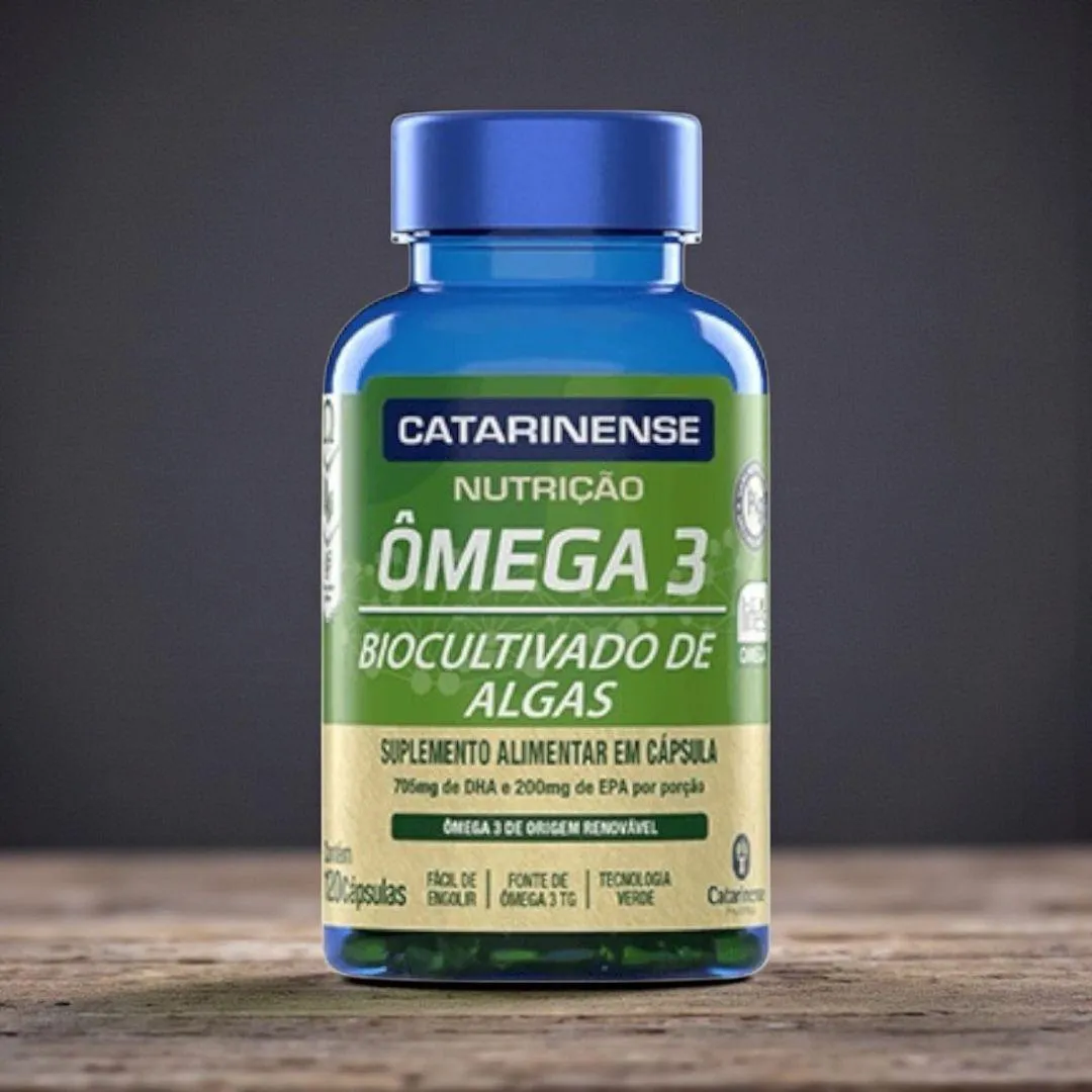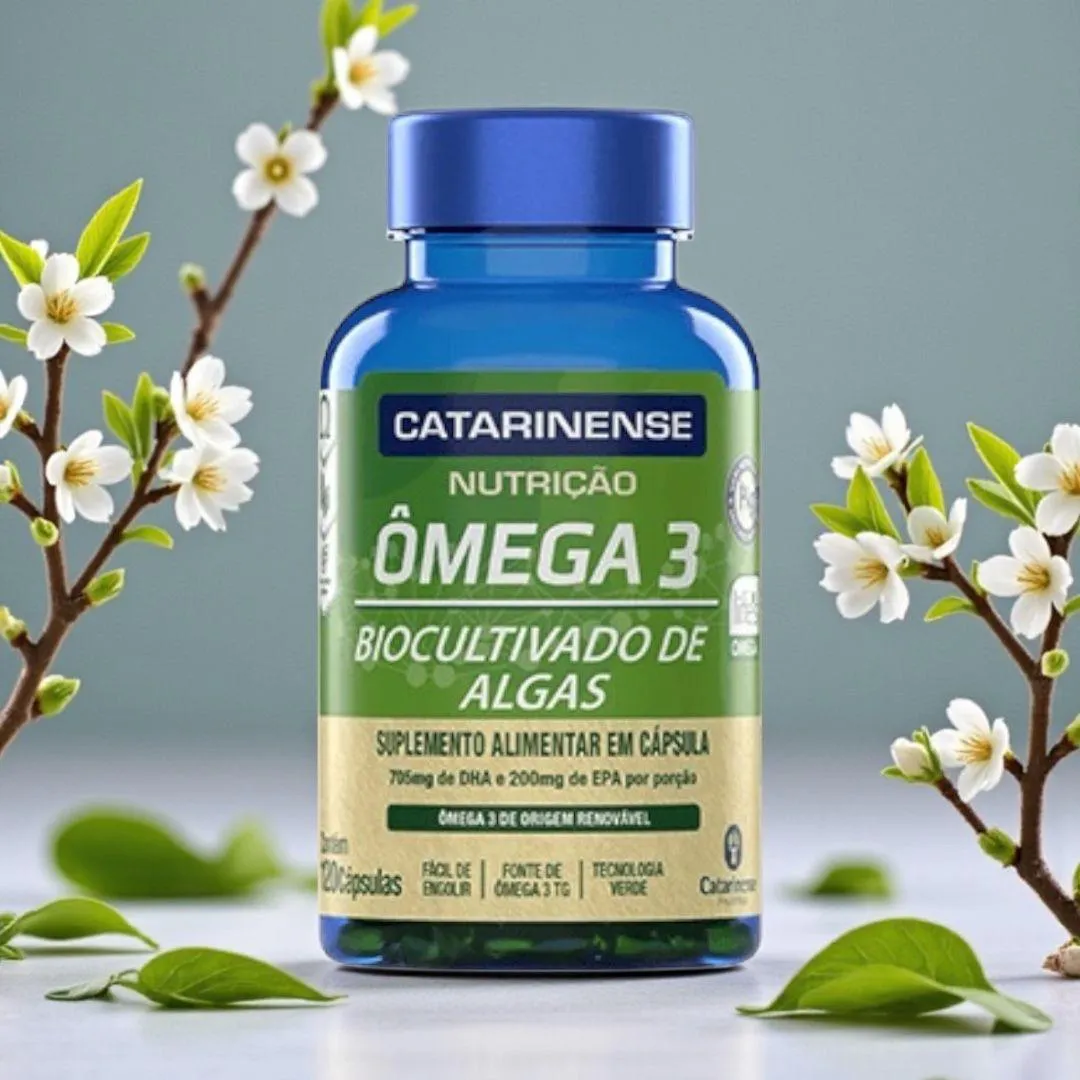 O Ômega 3 Biocultivado de Algas Catarinense Nutrição é um suplemento alimentar de alta pureza, produzido a partir de algas marinhas cultivadas em ambiente completamente controlado, livre de contaminantes ambientais e marinhos. Sua formulação oferece Ômega 3 na forma triglicerídea (TG) — reconhecida por sua excelente biodisponibilidade — com 705 mg de DHA e 200 mg de EPA por porção, dois ácidos graxos essenciais amplamente estudados por seus benefícios ao cérebro, coração, visão e ao equilíbrio geral do organismo. Por ser de origem vegetal e renovável, é uma alternativa sustentável aos tradicionais ômegas derivados de peixes, mantendo a mesma eficiência nutricional.Benefícios e Diferenciais