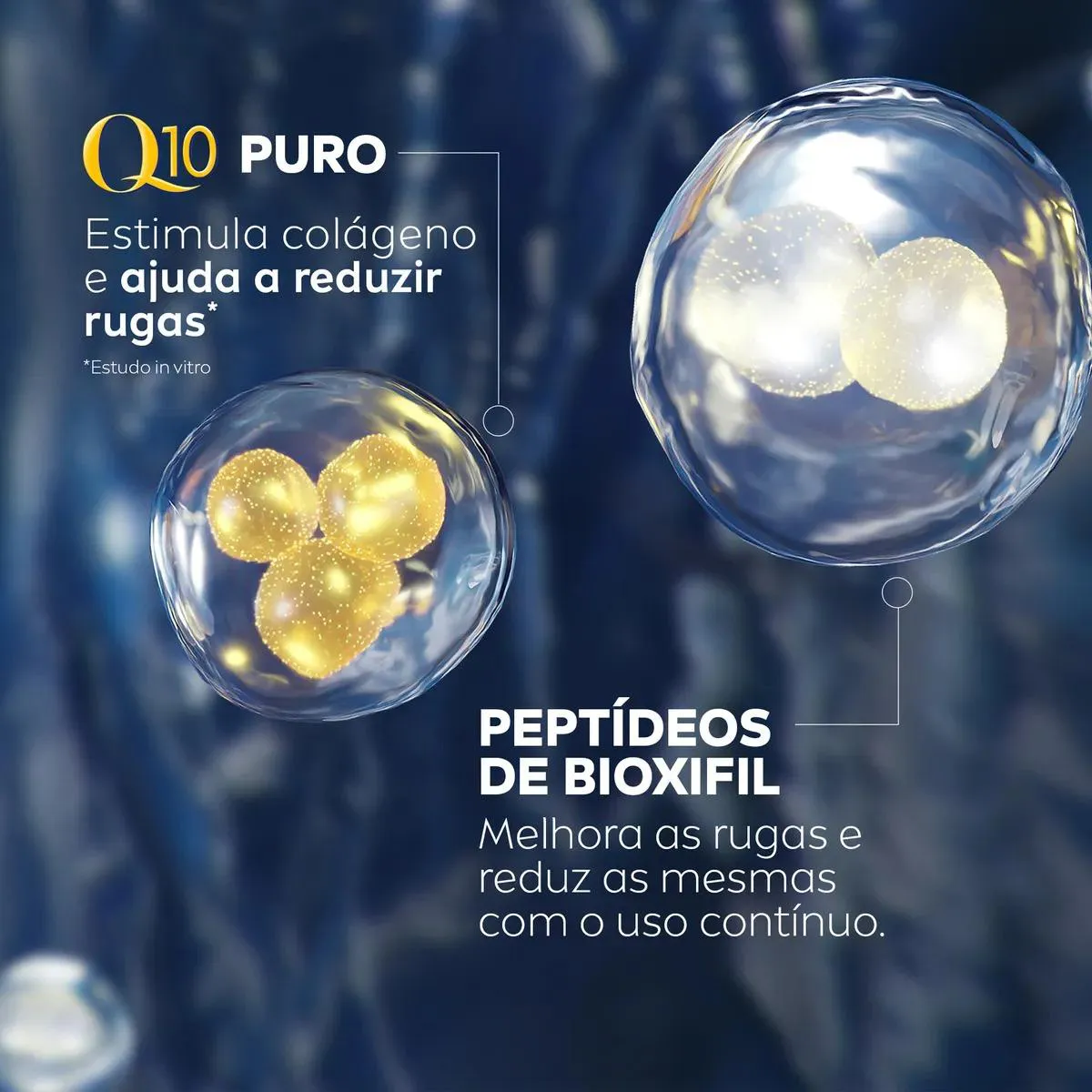 O Nivea Q10 Antissinais Expert é um creme facial indicado para reduzir rugas e linhas de expressão com efeito visível em até 5 minutos. Sua fórmula contém 5% de complexo ativado, com Q10 puro, Peptídeos de Bioxifil e creatina, que hidratam profundamente, estimulam a produção de colágeno e ajudam a prevenir o reaparecimento de novas rugas com o uso contínuo.