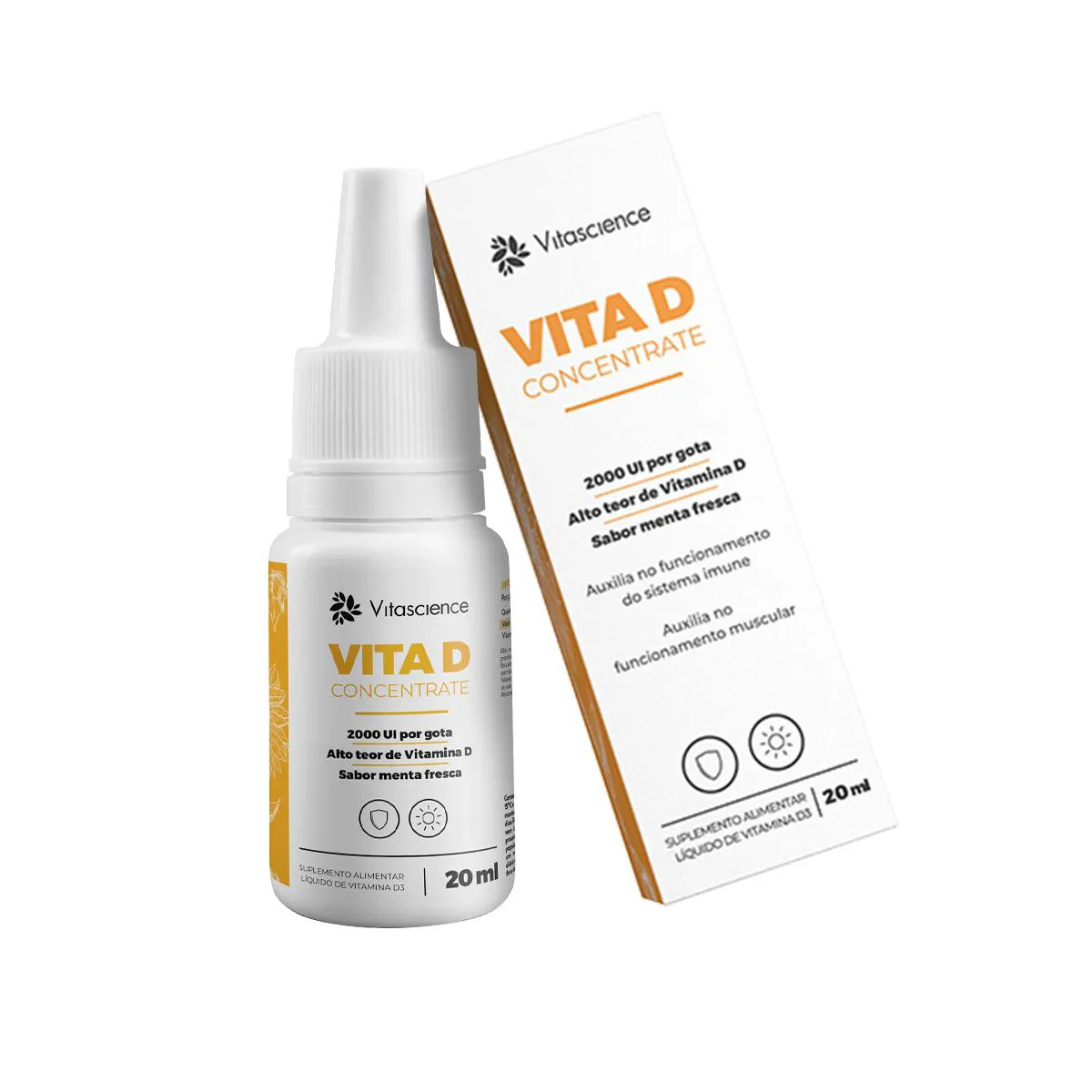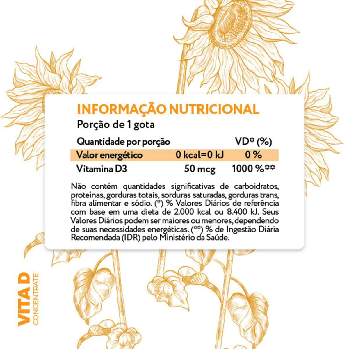 Vita D Concentrate: Com uma formulação exclusiva que fornece 2000 UI por gota com sabor mentolado refrescante, seguir as recomendações de ingestão diária nunca foi tão fácil, prático e rápido.