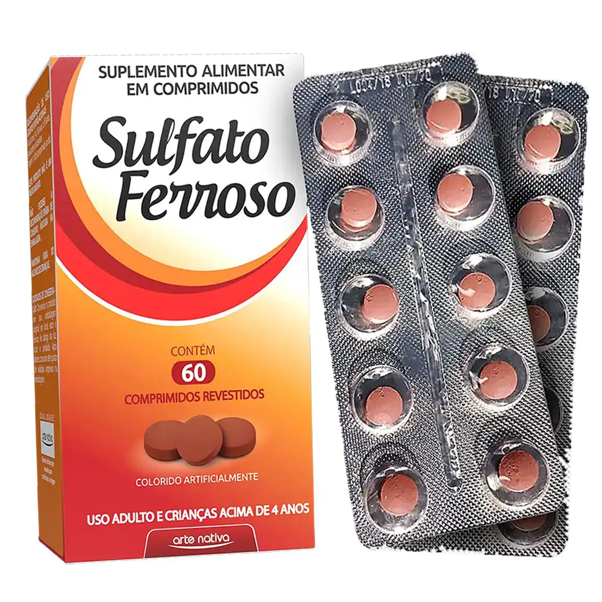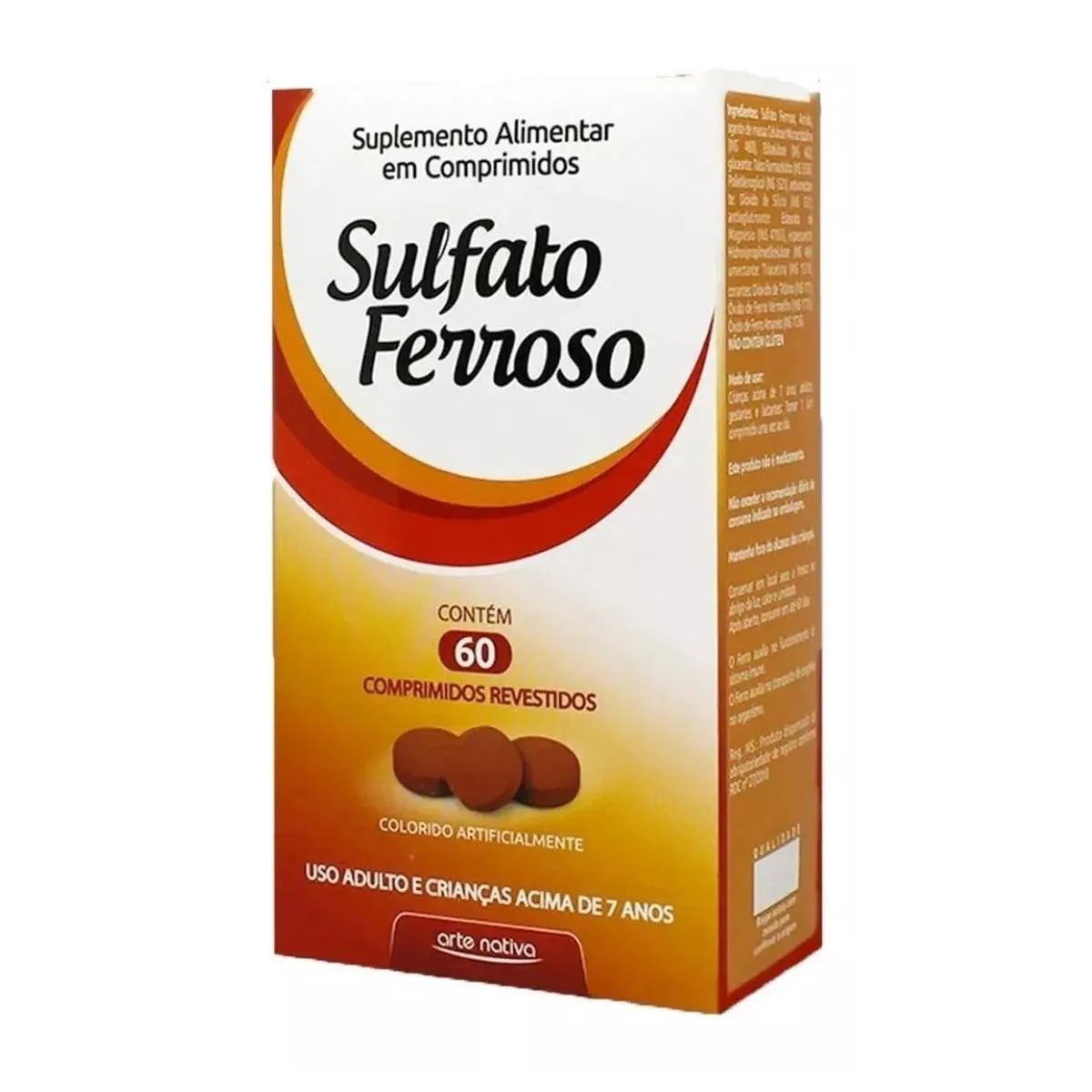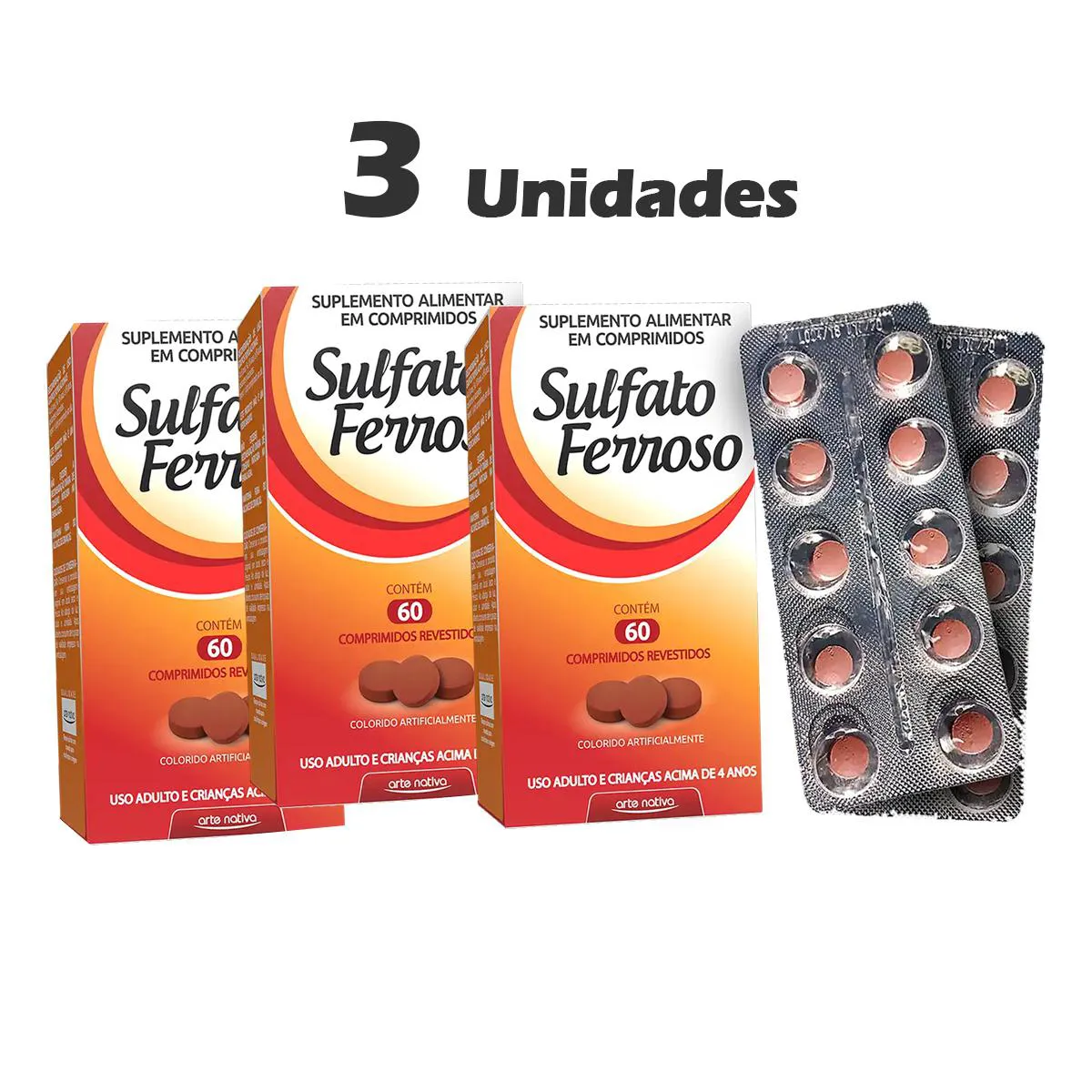 3un Sulfato Ferroso Arte Nativa Suplemento Alimentar C/ 60 Comprimidos