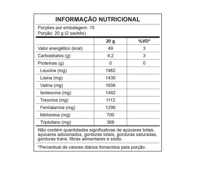 - Contém 8 aminoácidos essenciais em forma livre.