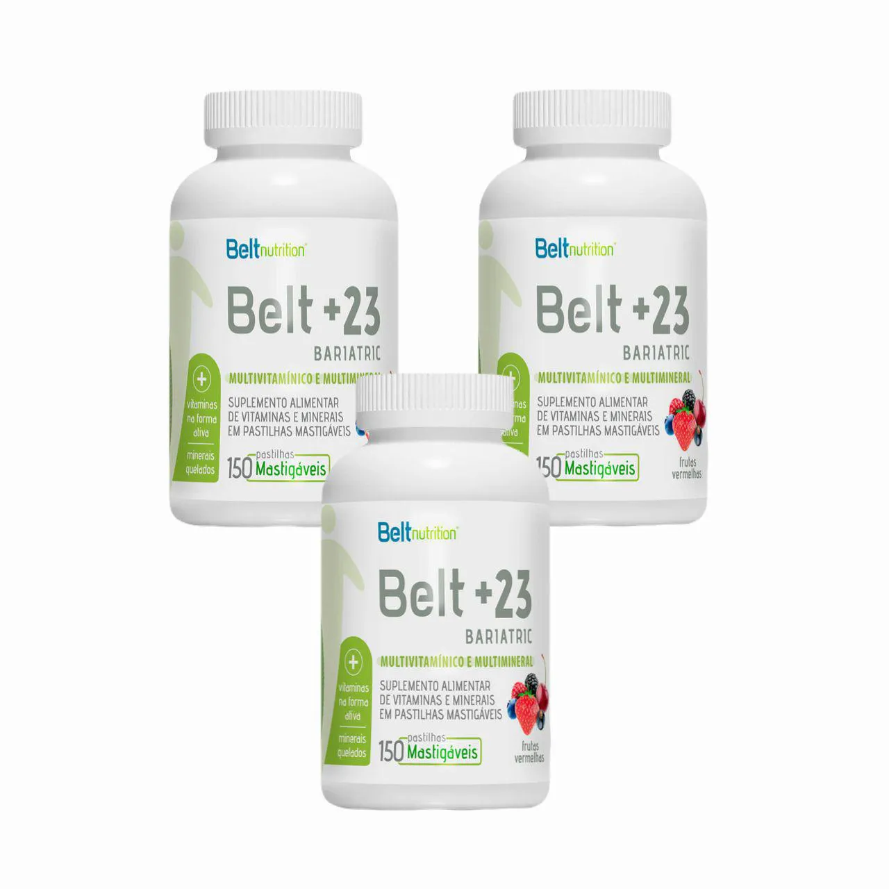 BELT +23 BARIATRIC MASTIGÁVEL - SABOR FRUTAS VERMELHAS. Kit contendo 3 frascos com 150 pastilhas cada.