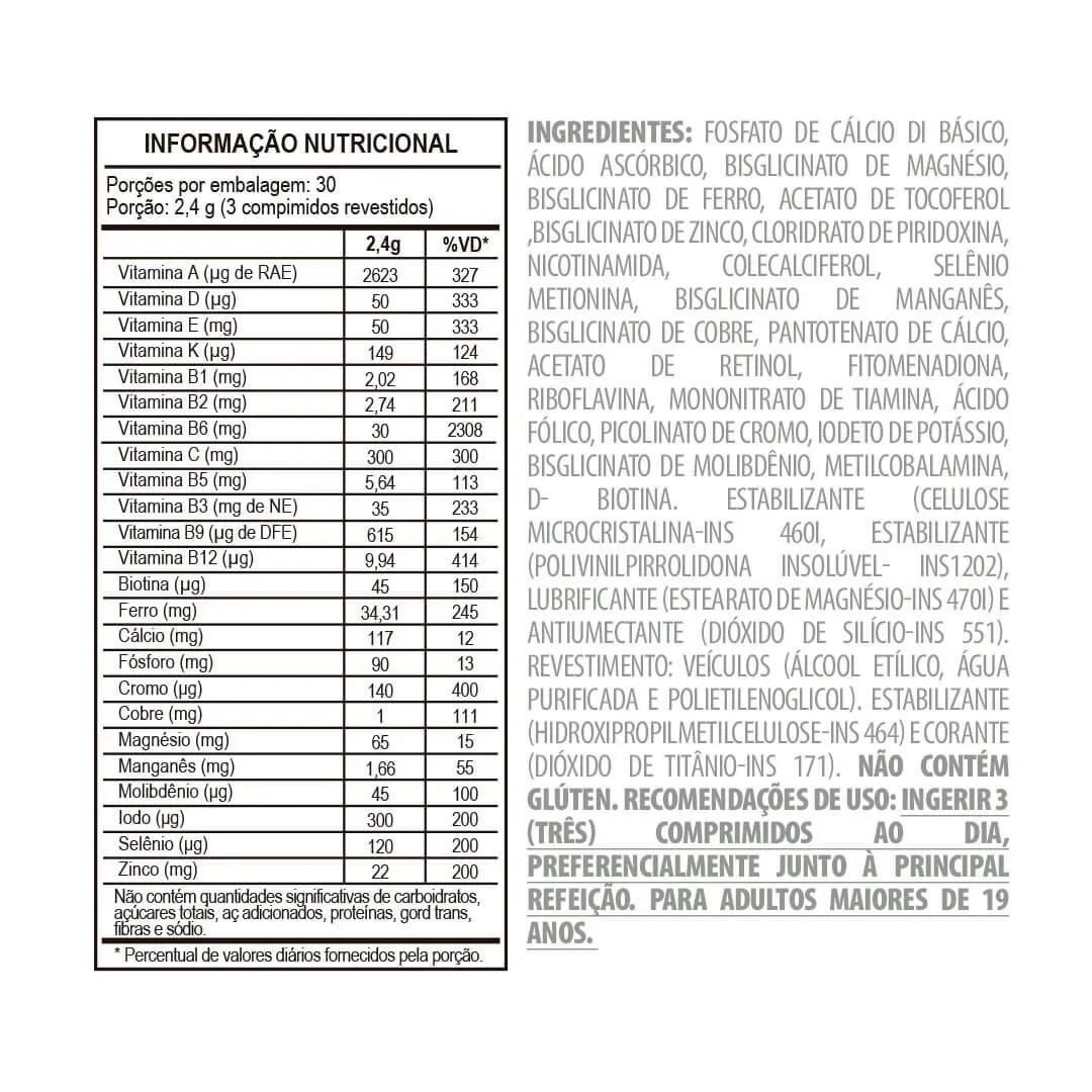 É um dos mais completos e balanceados do mercado, possui vitaminas na forma ativa e minerais quelatos, o que favorece em até 90% a absorção.