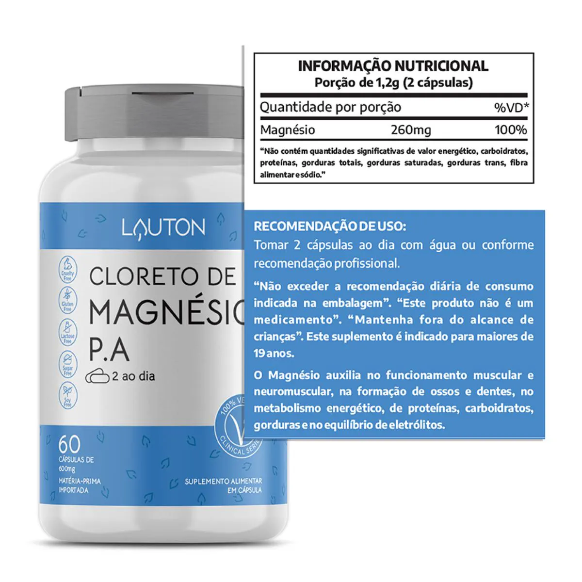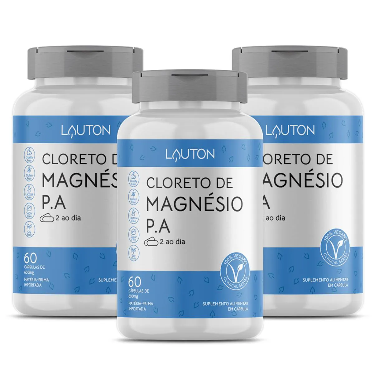 3x Cloreto de Magnésio 500mg Lauton 60 cápsulas sem Sabor