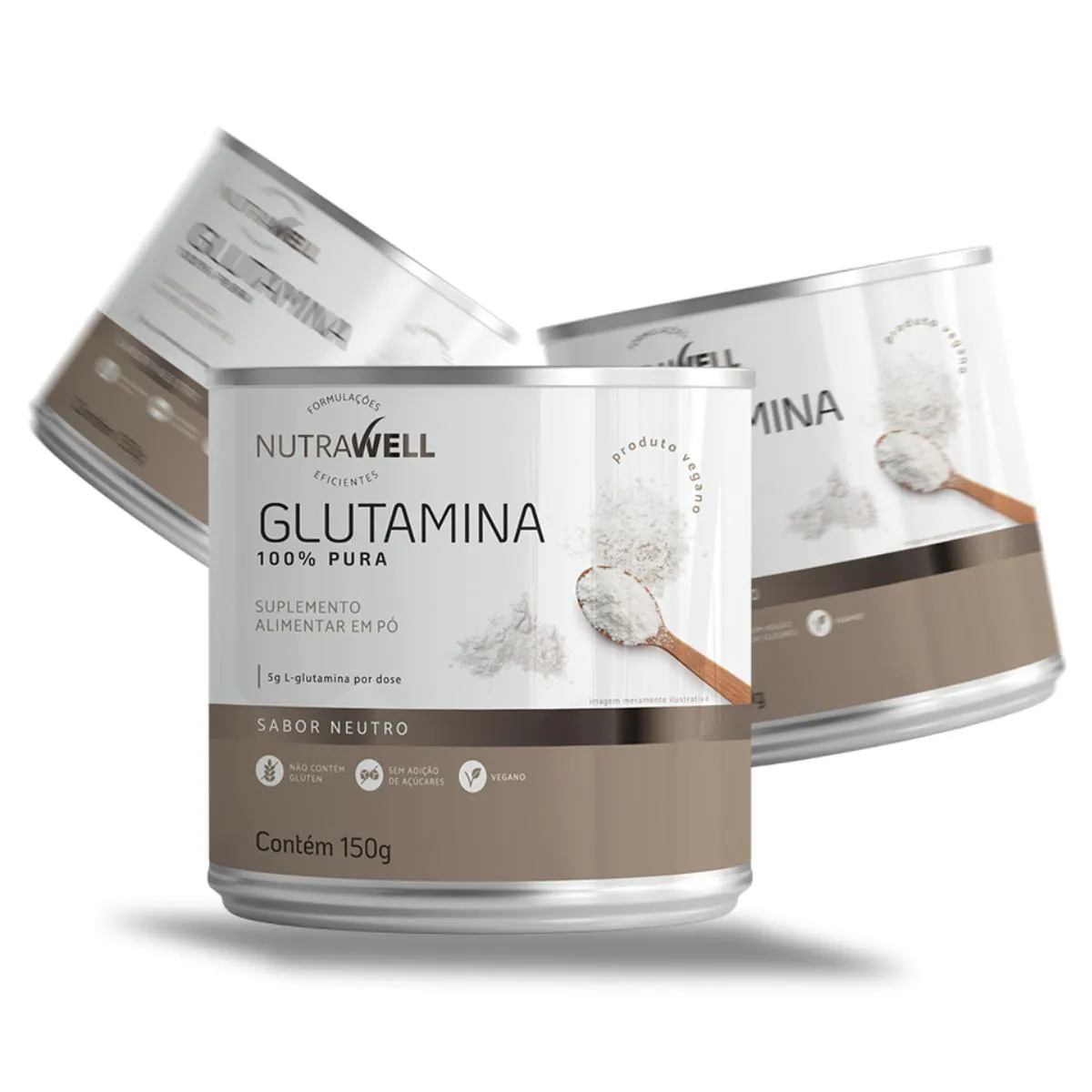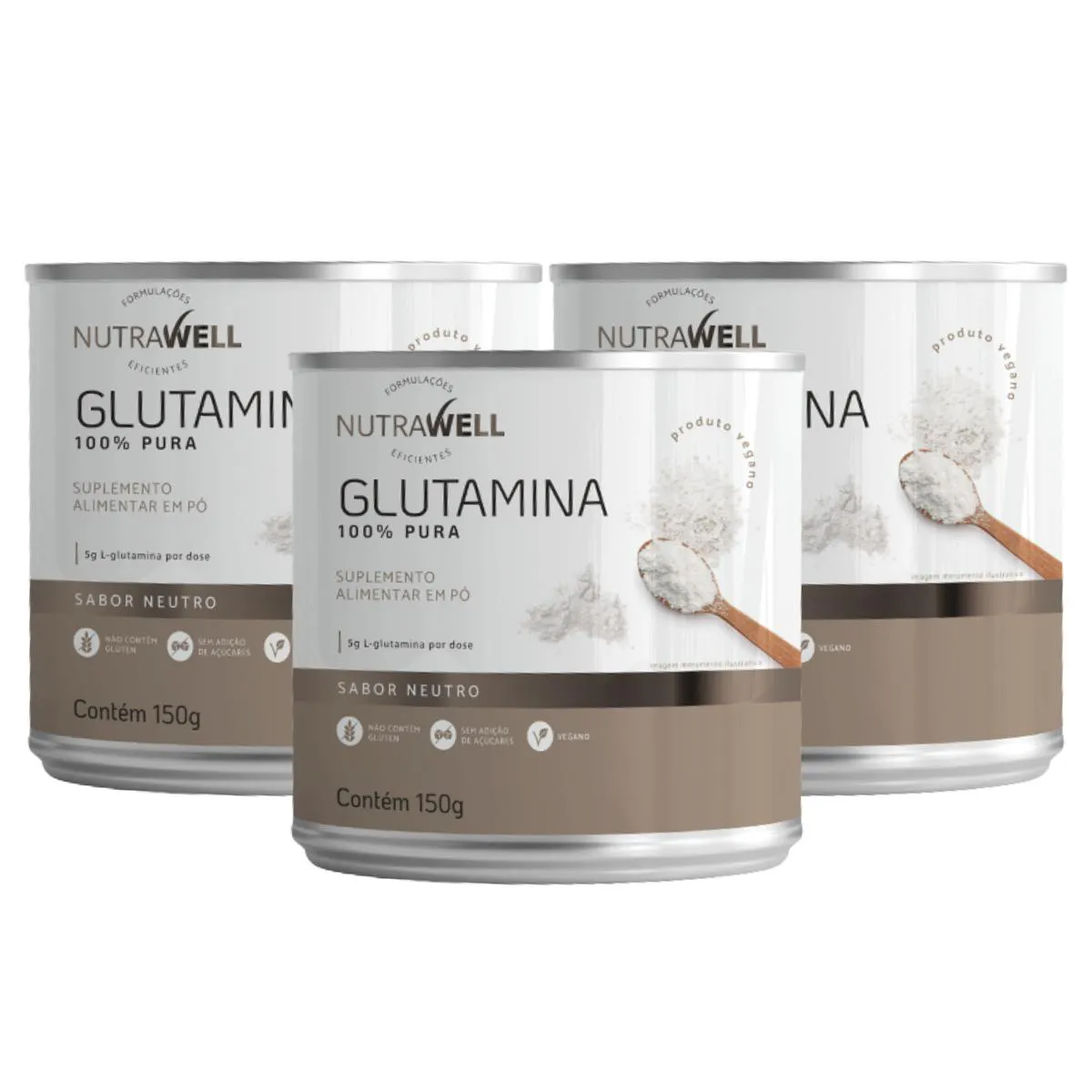 3X Glutamina 100% Pura Nutrawell 150G SEM Sabor