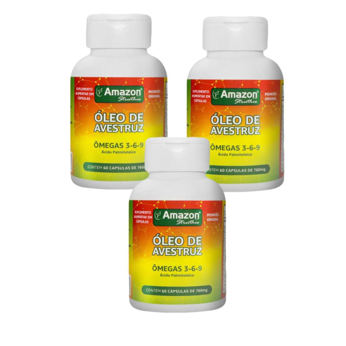 3X Óleo de Avestruz Amazon Struthio - Ômegas 3-6-9- 60 Cáps. SEM Sabor