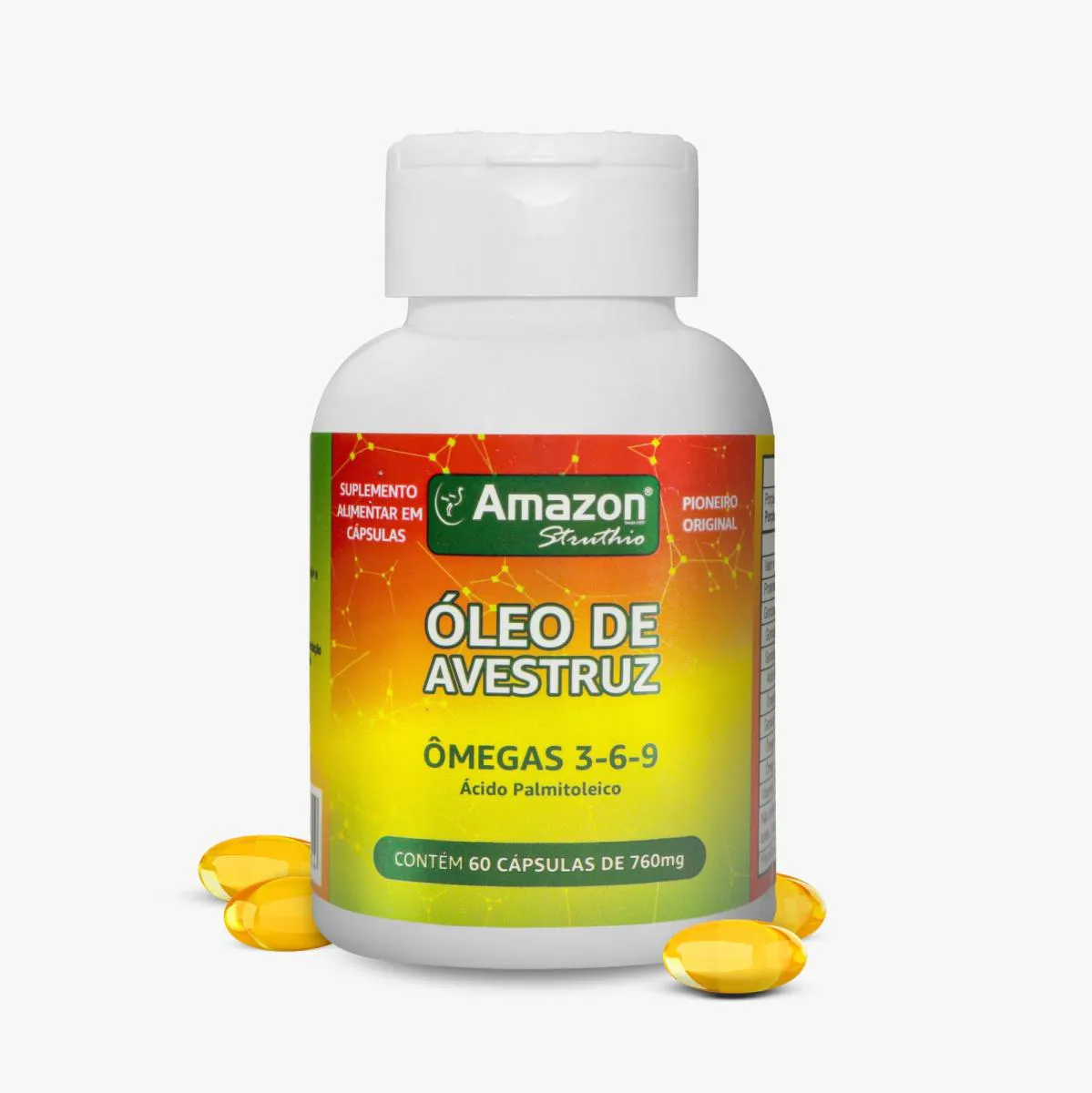 Aqui na Educommerce você encontra o  óleo de avestruz amazon struthio que possui sinergia nutricional única resultando em uma composição completa em ácidos graxos ômega 3 , ômega 6 e ômega 9    O óleo de avestruz é uma fonte completa de ácidos graxos essenciais. Cada cápsula contém a proporção ideal de ômegas.   Produzido de forma sustentável na Amazônia, respeitando o meio ambiente e as comunidades locais.      Importante: Gestantes, lactantes, indivíduos menores de 19 anos e pessoas com condições médicas específicas devem consultar um médico antes do uso.   ATENÇÃO: Esse produto não é um medicamento, mas sim um suplemento alimentar isento de Registro no MS/ANVISA de Acordo com RDC N°240/2018. Não é recomendável exceder a recomendação diária do fabricante do produto. Sempre consumir com supervisão médica. Manter fora do alcance de crianças.