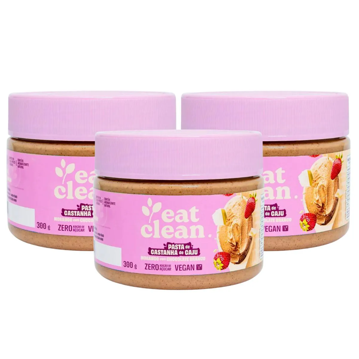 3x Pasta de Castanha de Caju Morango com Chocolate Branco Eat Clean 300g