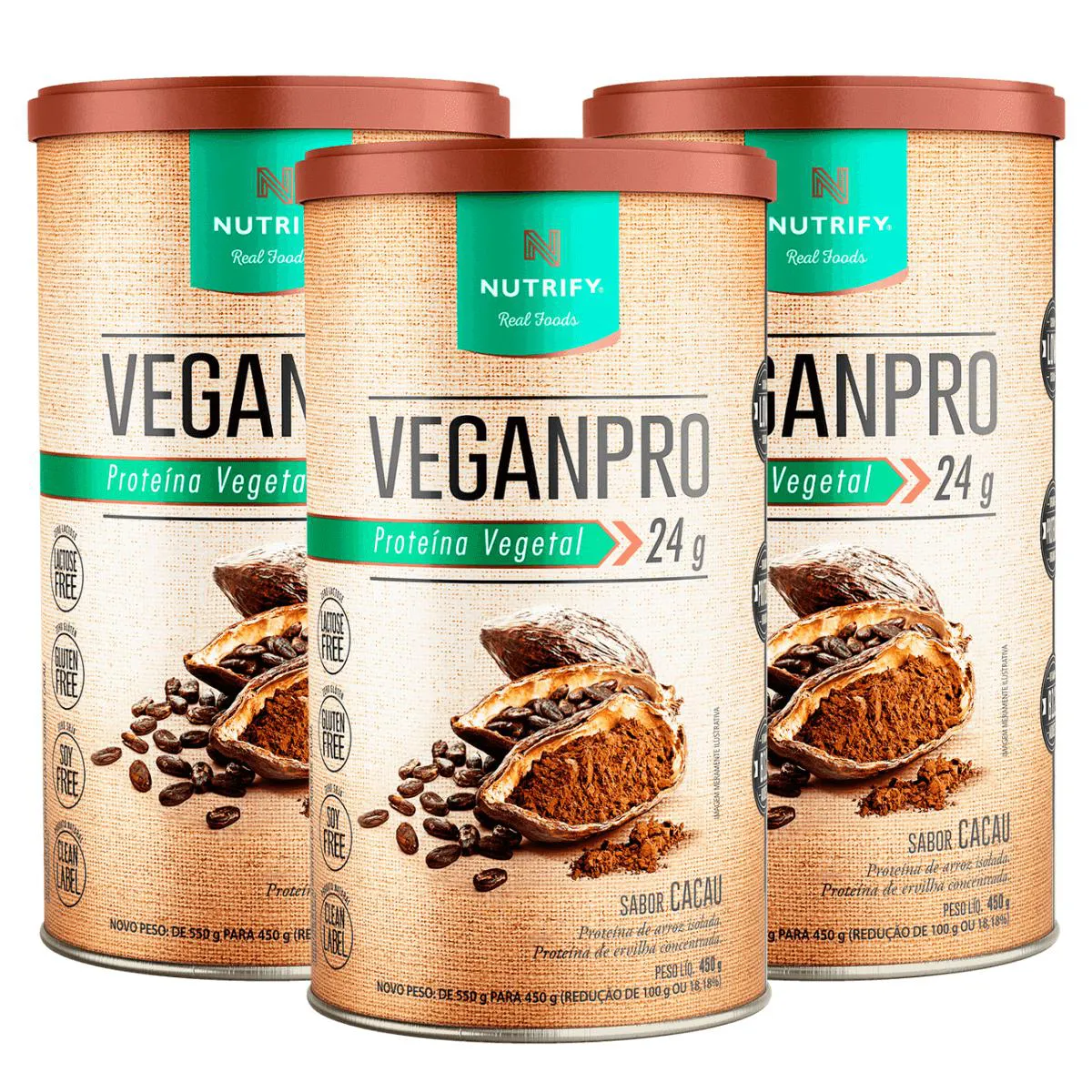 3X Proteína Vegana Isolada Veganpro Nutrify Cacau 450G
