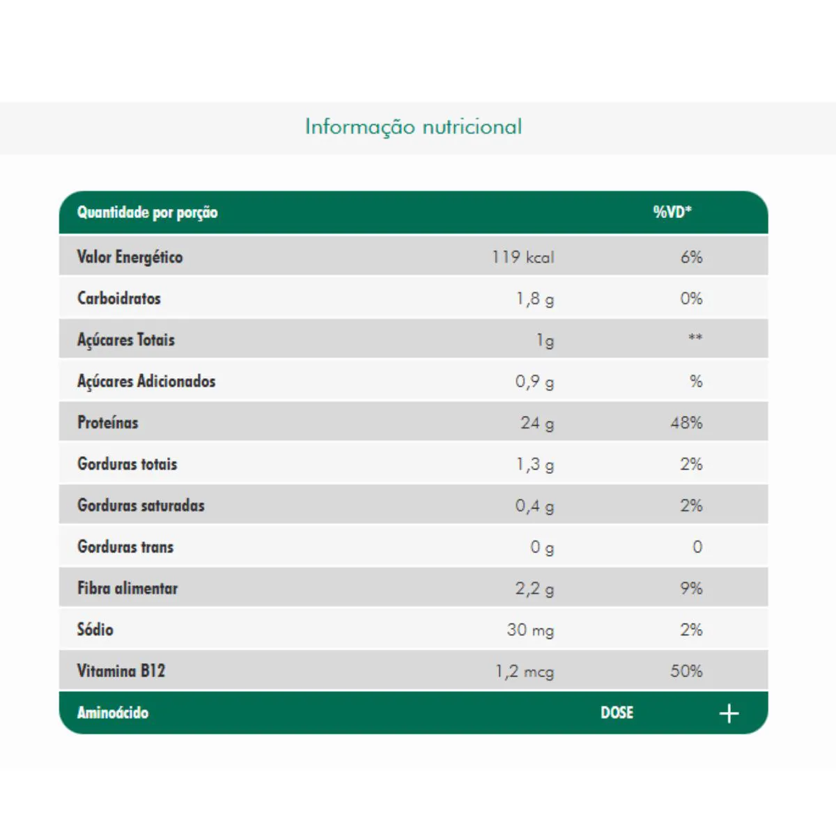 Ingredientes: Mix de proteínas vegetais (proteína de arroz e proteína de ervilha (Pisum sativum L.) isolada), cacau em pó solúvel, metilcobalamina, aromatizantes naturais, espessante goma xantana e edulcorantes glicosídeos de esteviol de Stevia rebaudiana Bertoni. ALÉRGICOS: PODE CONTER SOJA. NÃO CONTÉM GLÚTEN. Como tomar: Misture 2 scoops (30g) de VeganPro com água, leite vegetal. Agite bem e aproveite como um shake pós-treino ou lanche saudável.