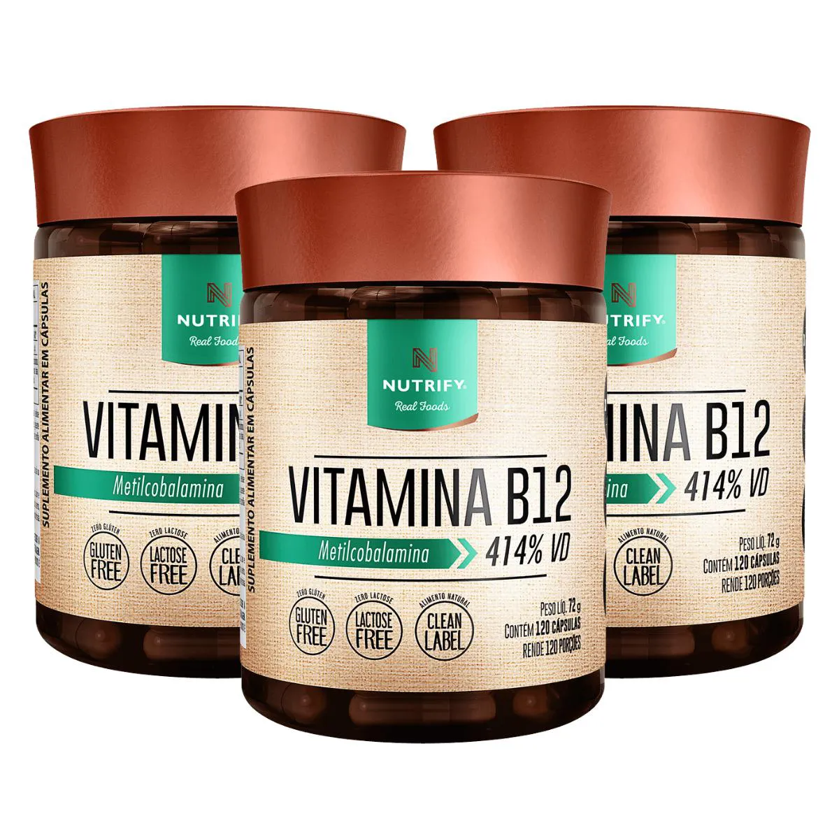 3X Vitamina B12 Metilcobalamina 414% Vd Vegana Nutrify 120 Capsulas SEM Sabor