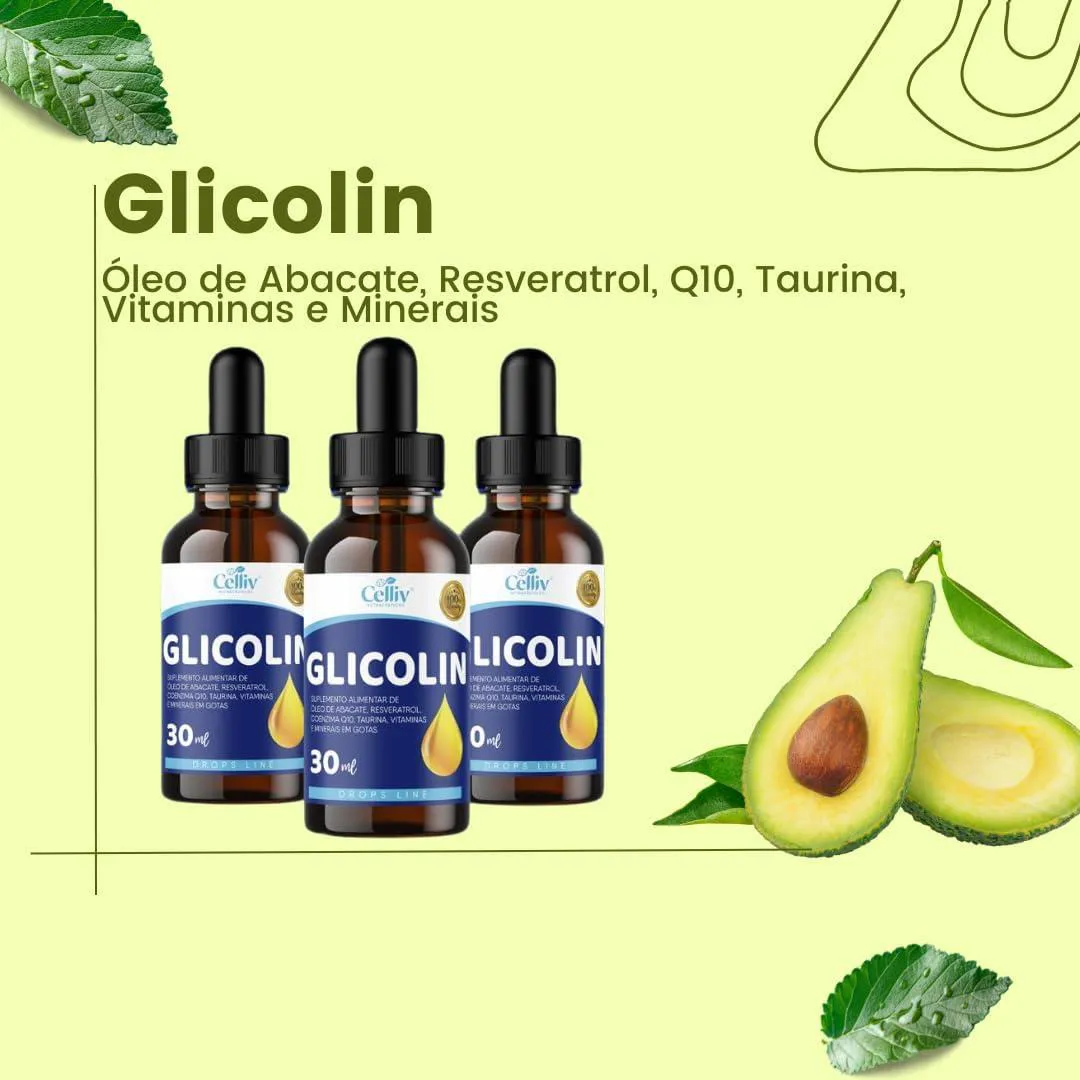 4X GLICOLIN - ÓLEO DE ABACATE, RESVERATROL, COENZIMA Q10, TAURINA E VITAMS 30ML CELLIV