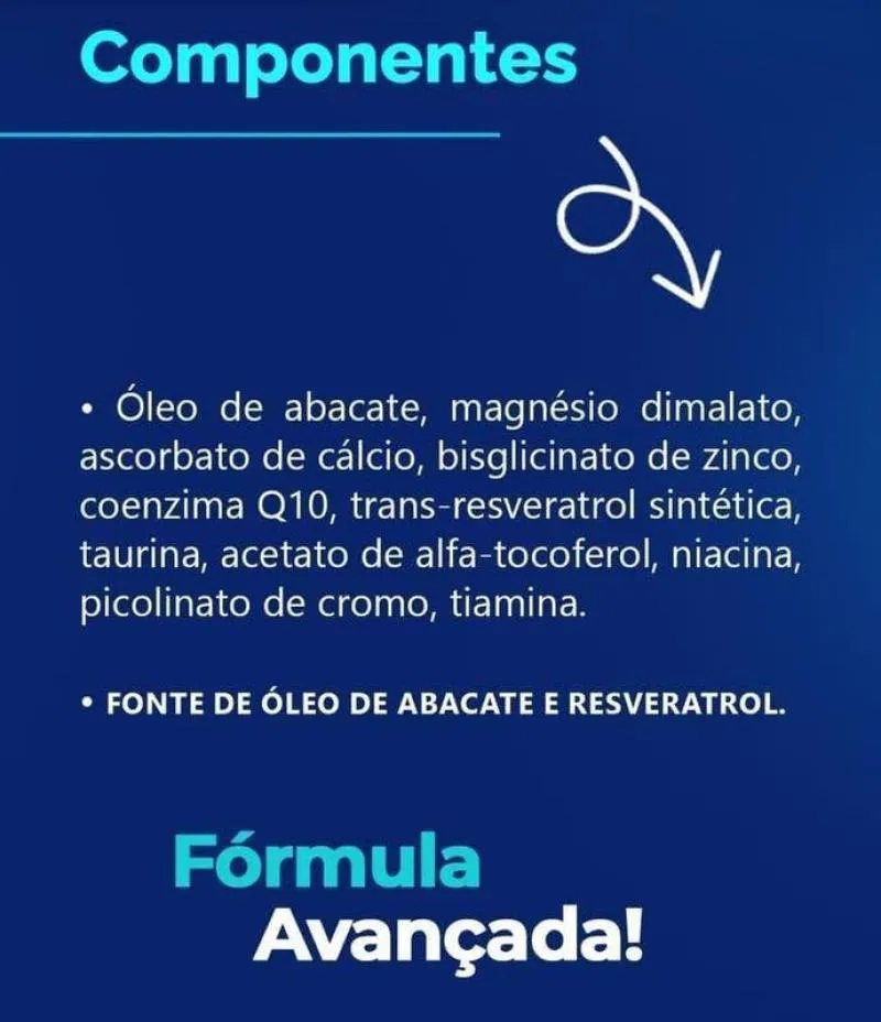 - Suplemento com óleo de abacate e resveratrol.