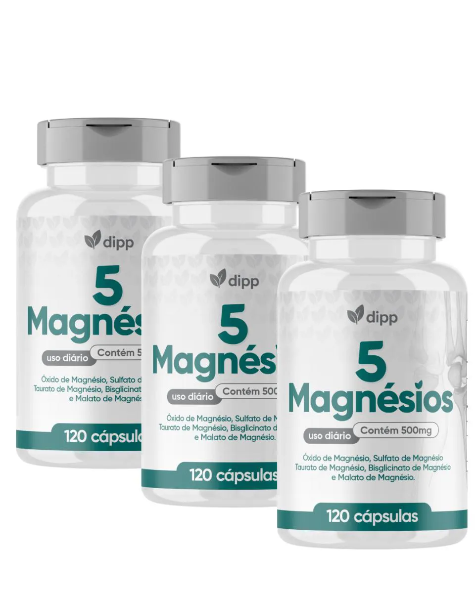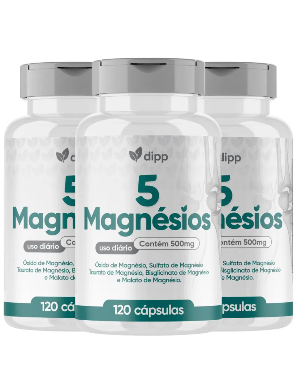 5 Magnésios Dipp – 5 Tipos de Magnésio – 120 cápsulas Kit com 3 Frascos