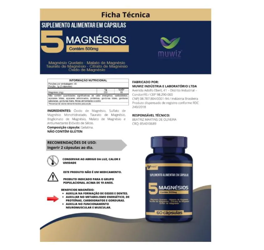 5 Magnésios Muwiz 500mg - 60 cápsulas
