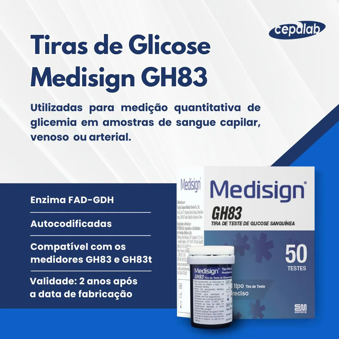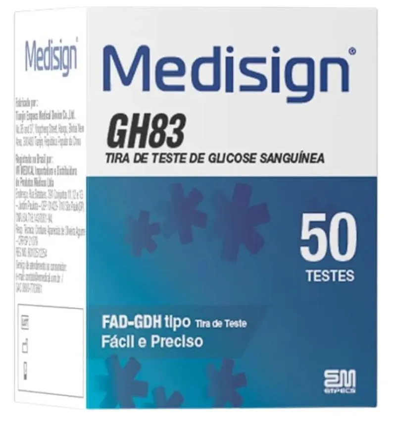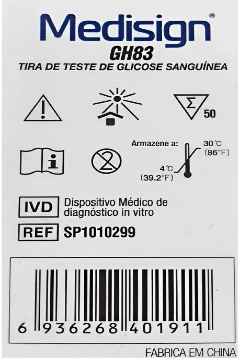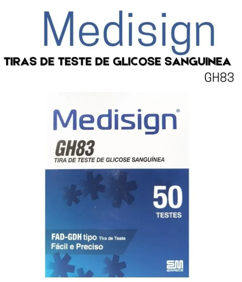 50 Tiras de Teste de Glicose Glicemia Medisign Gh83