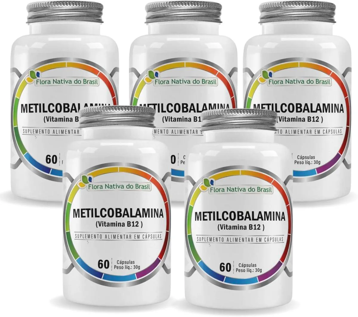 5X Metilcobalamina (Vitamina B12) 60 Caps de 500Mg Flora Nativa do Brasil SEM Sabor
